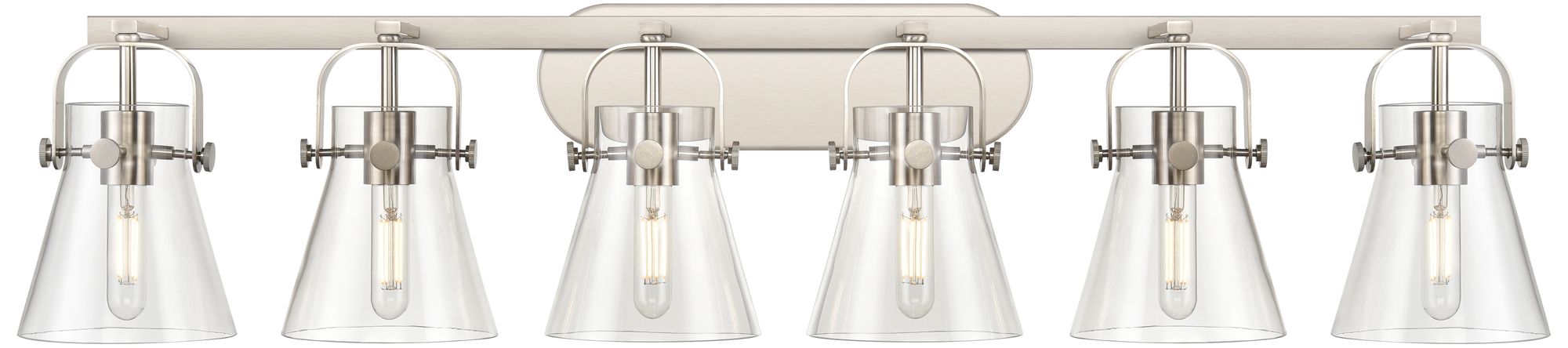 Pilaster II Cone 45.5" Wide 6 Light Satin Nickel Bath Light w/ Clear S