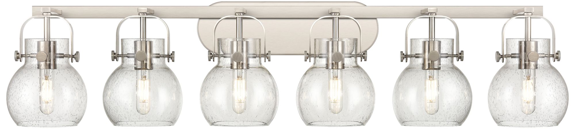 Pilaster II Sphere 45.5"W 6 Light Satin Nickel Bath Light w/ Seedy Sha