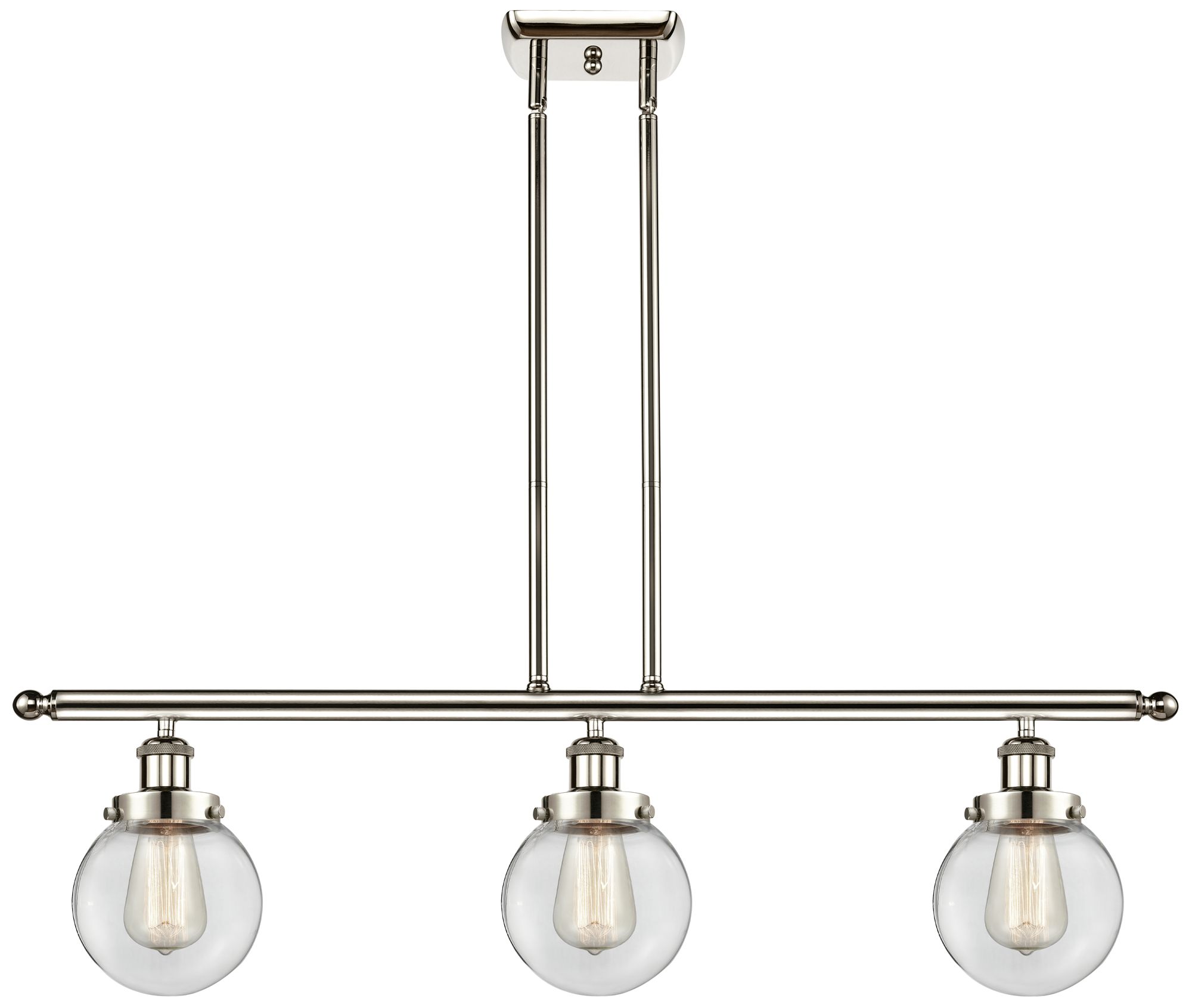 Beacon 36"W 3 Light Polished Nickel Stem Hung Island Light w/ Clear Sh