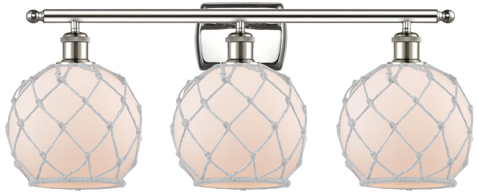 Farmhouse 26" 3-Light Polished Nickel Bath Light w/ White Rope Shade