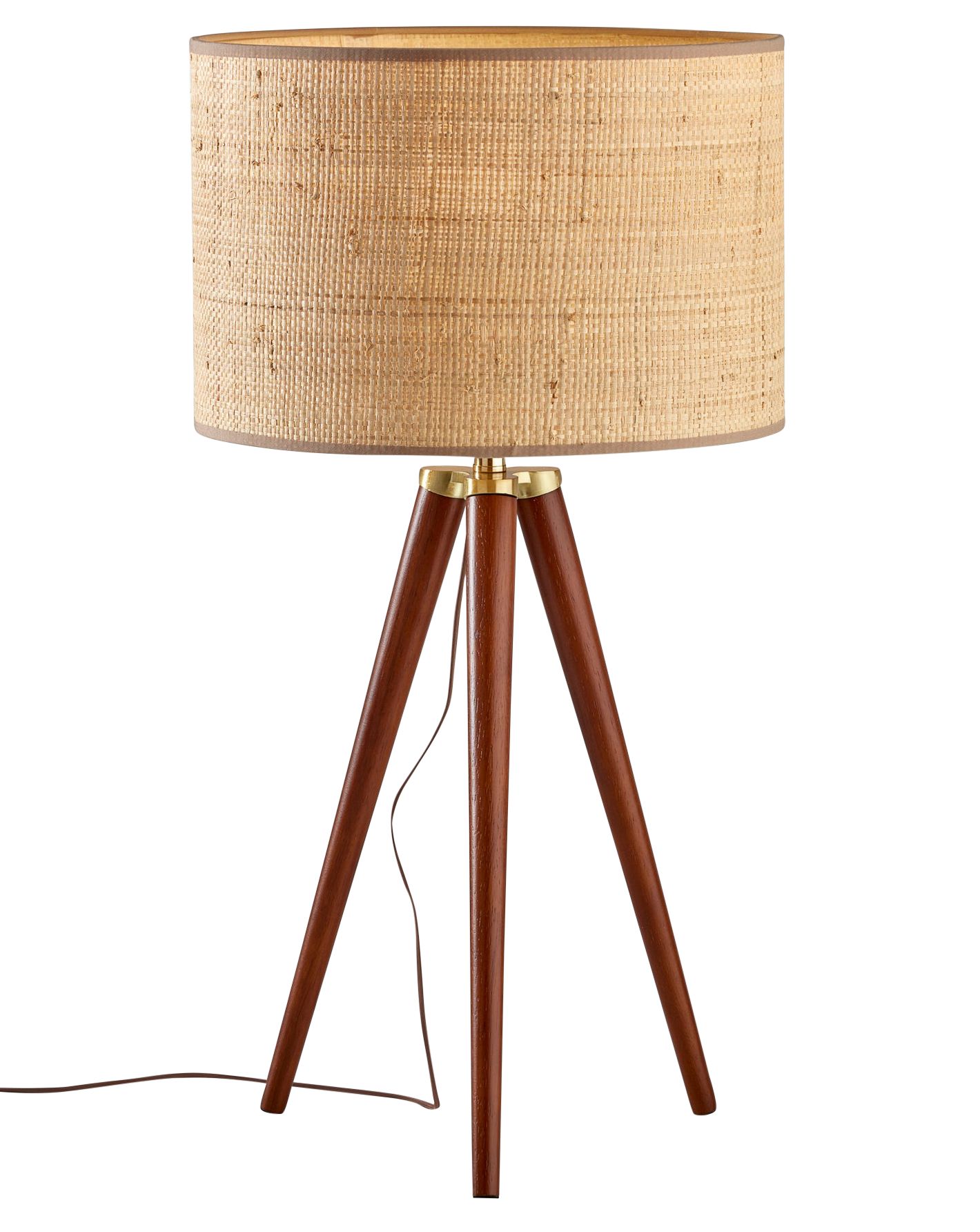 Adesso Jackson 26 1/4" Modern Rattan and Walnut Wood Tripod Table Lamp
