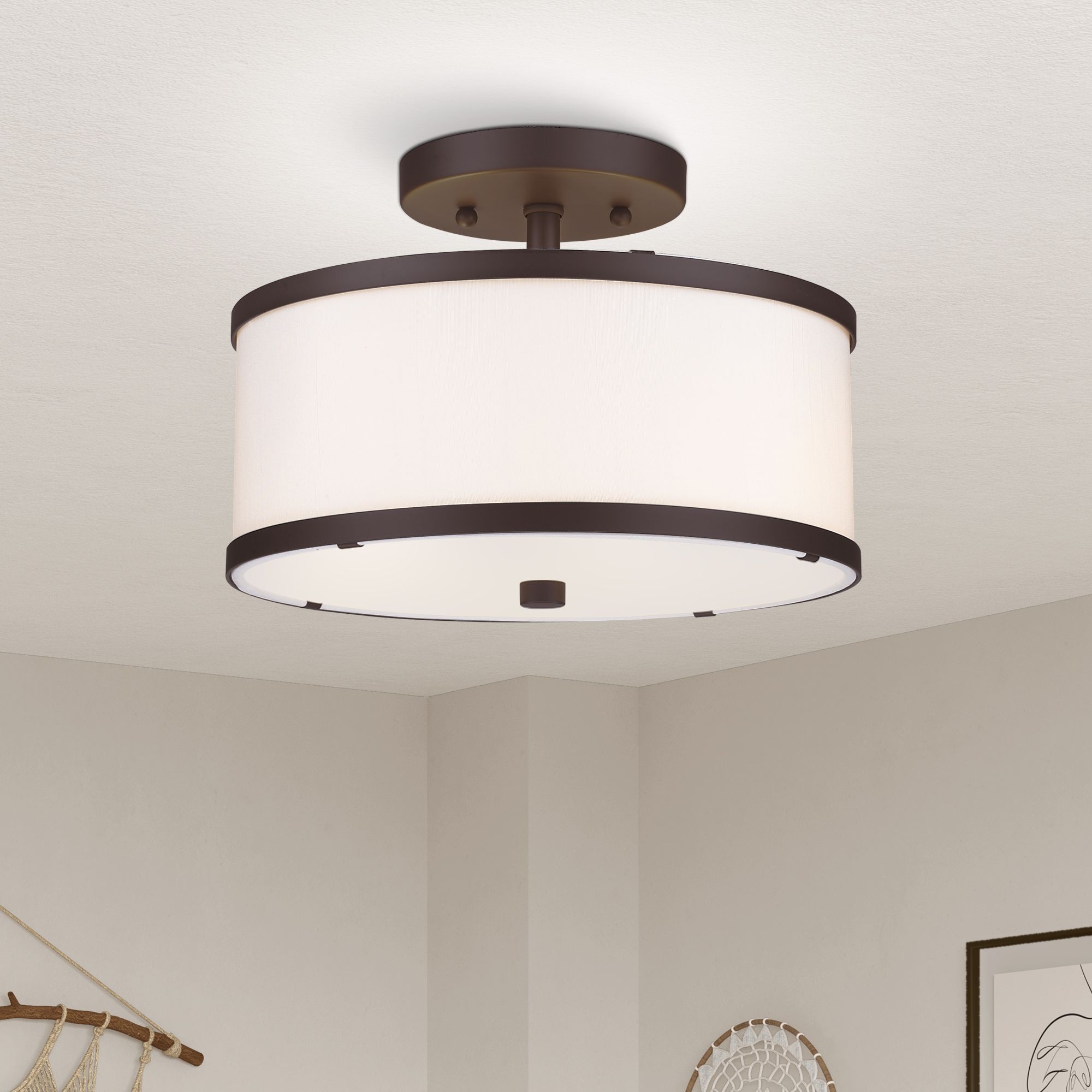 Livex Lighting 13" Wide 2-Light Bronze White Drum Ceiling Mount