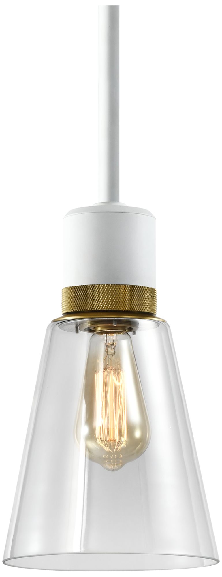 Zigrina 7" E26 Clear Bell Glass Pendant Matte White with Brass Metal F