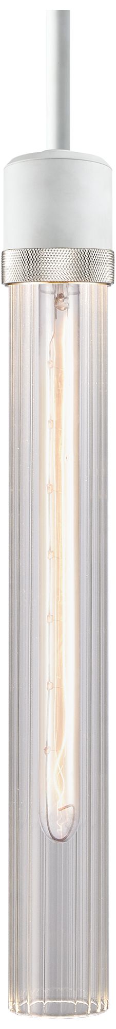 Zigrina 3" E26 Cylindrical Pendant, 18" Fluted Glass, White &