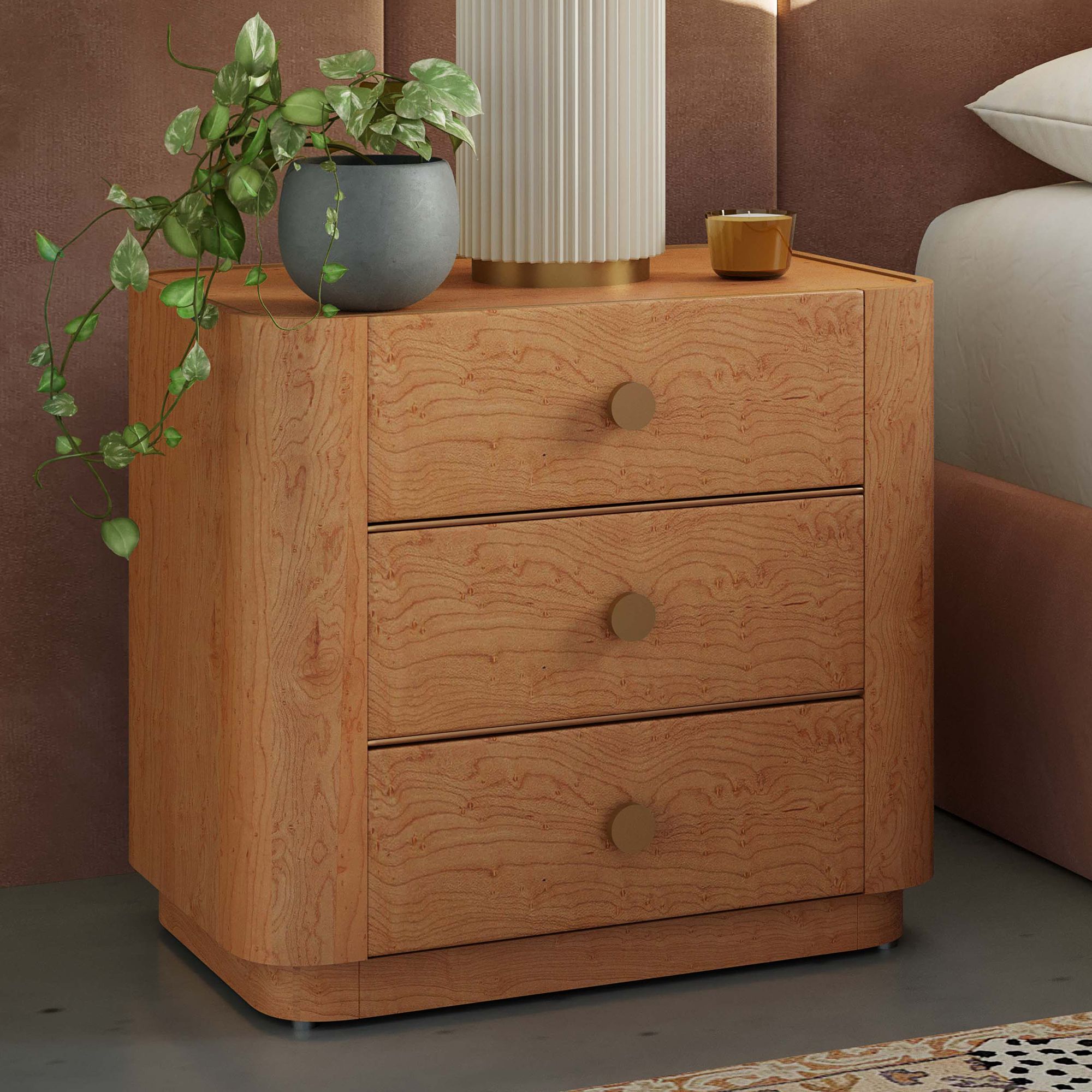 TOV Abigail 22" Wide Natural Birdseye Wood 3-Drawer Nightstand