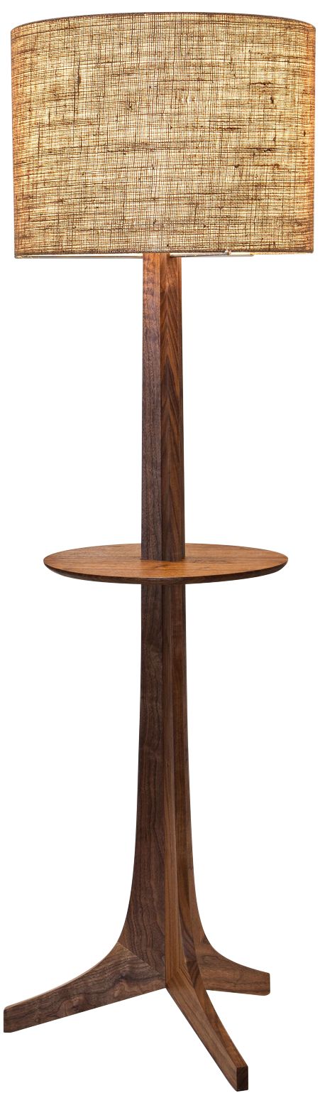 Cerno Nauta 59" Walnut and Brass LED Tray Floor Lamp with Burlap Shade