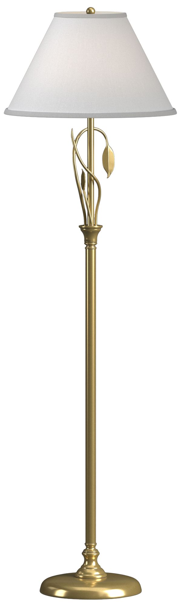 Hubbardton Forge Forged Leaves 56" Anna Shade and Brass Floor Lamp