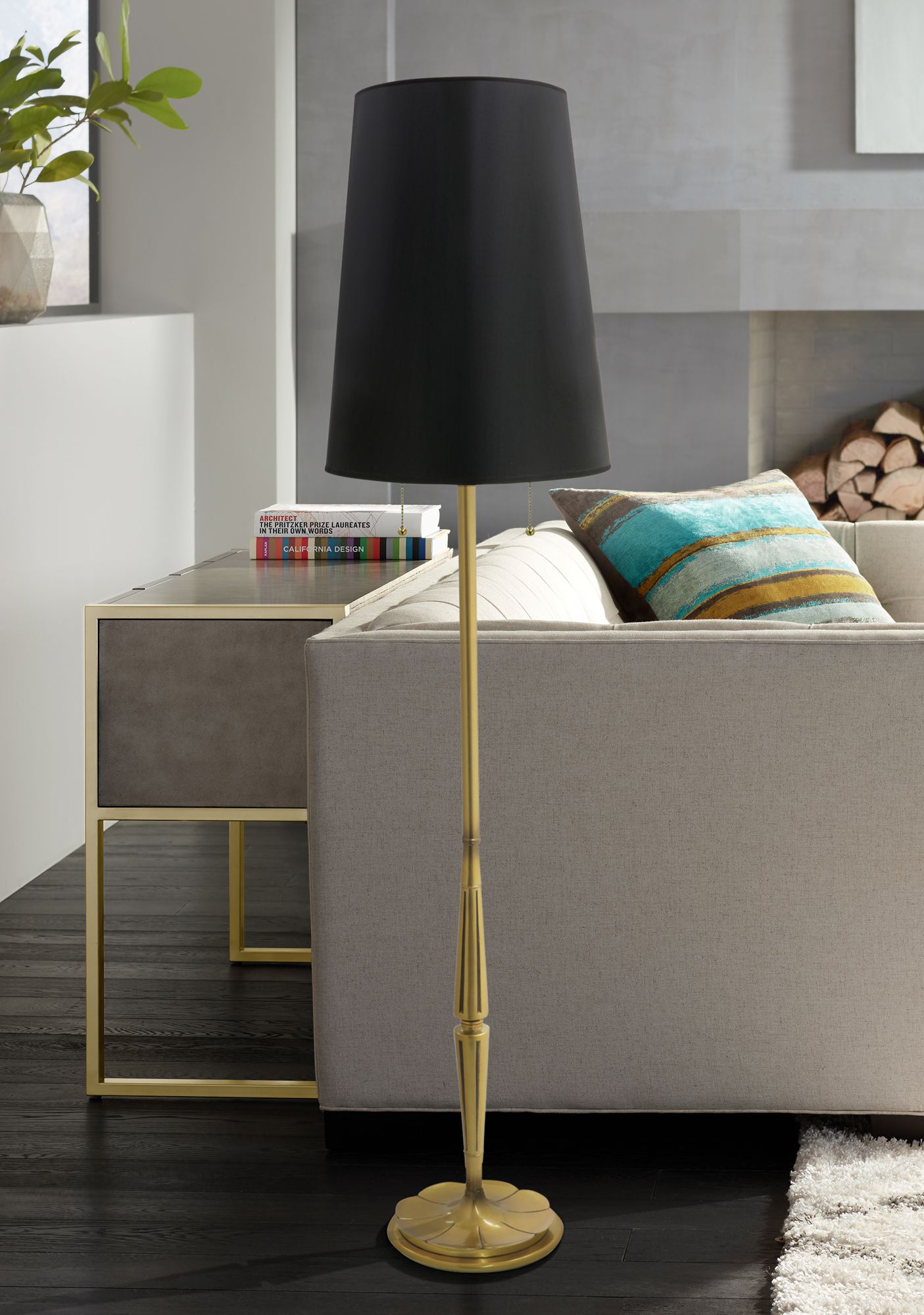 Stiffel Lexington 66" High Modern Black and Brass Floor Lamp