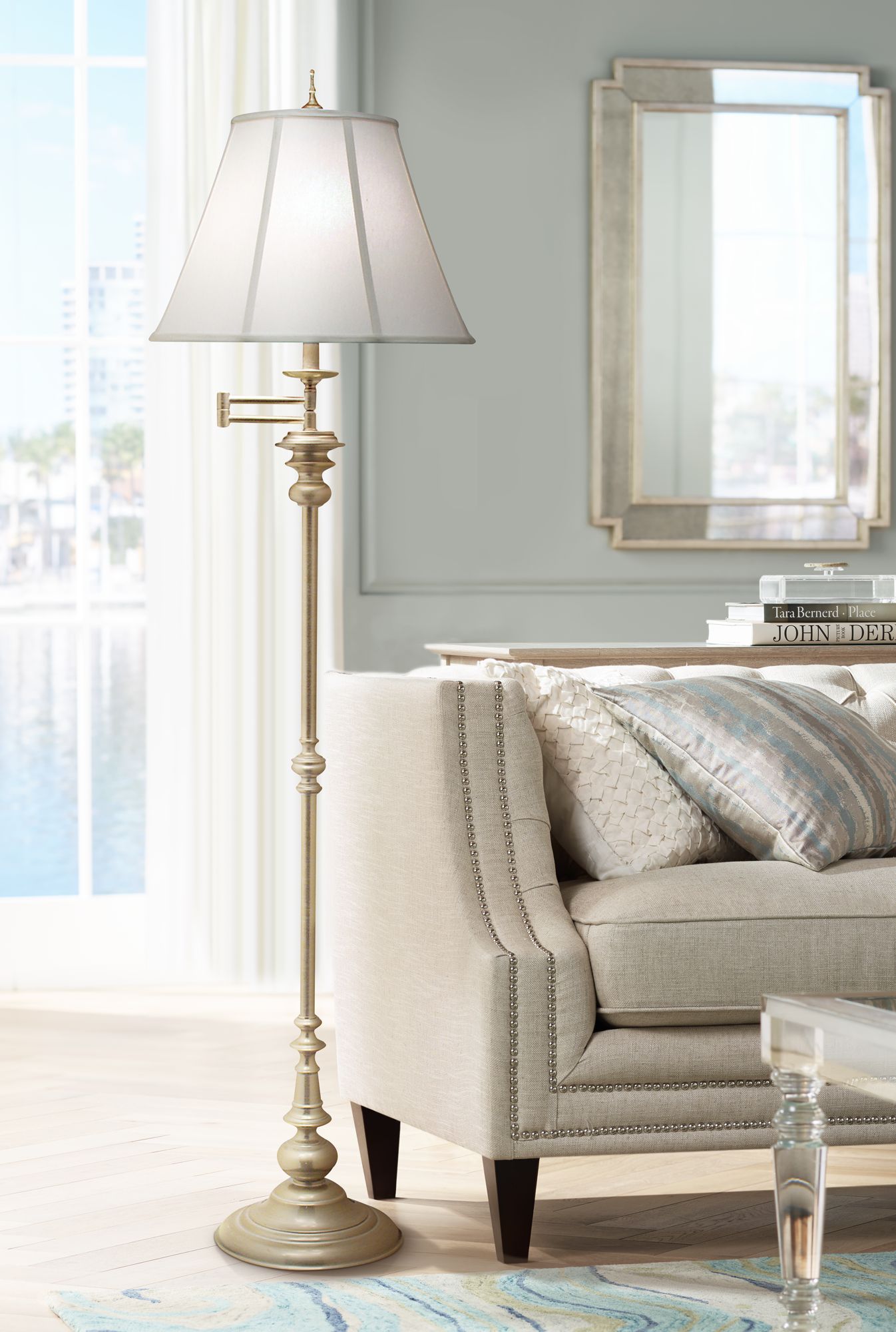 360 Lighting 60 1/2" Ivory Linen Nickel Finish Swing Arm Floor Lamp