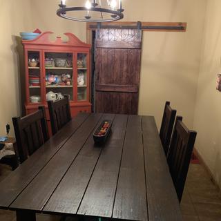 - Round open wagon wheel frame with exposed bulbs. Dark oil-rubbed bronze finish. Metal construction.