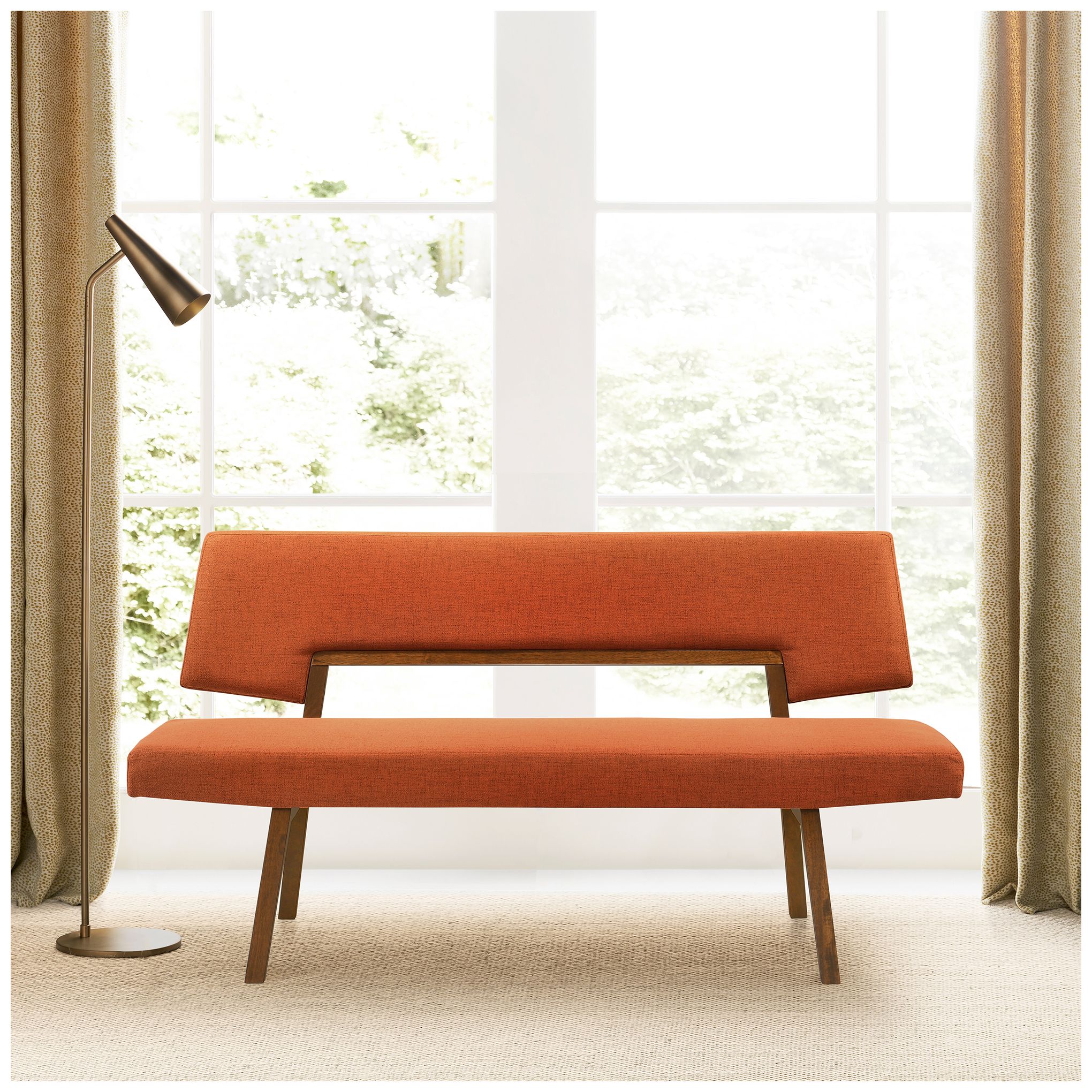 Channell 63" Wide Orange Fabric Walnut Wood Dining Bench