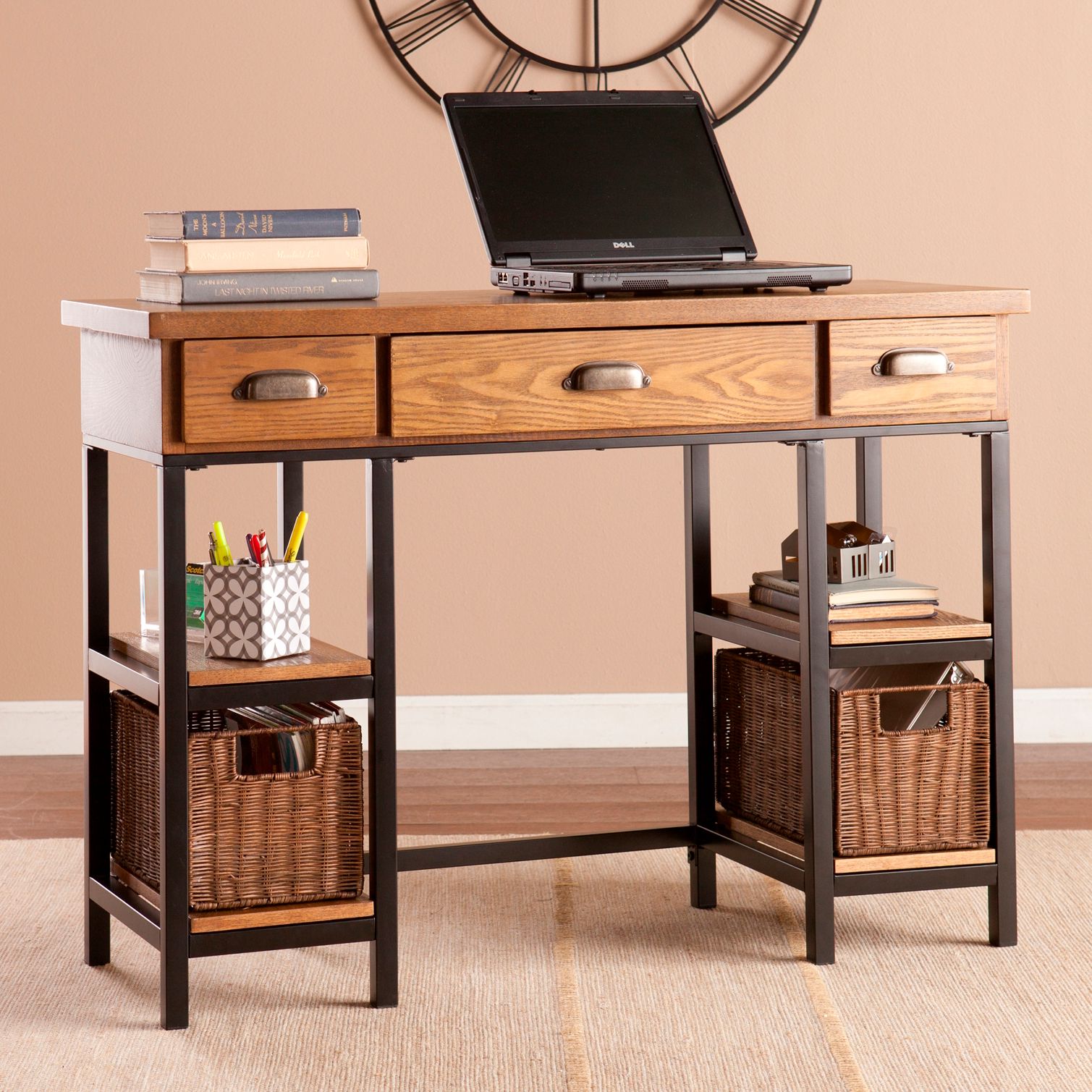 Mirada 42" Wide Natural Brown and Matte Black 3-Drawer Desk