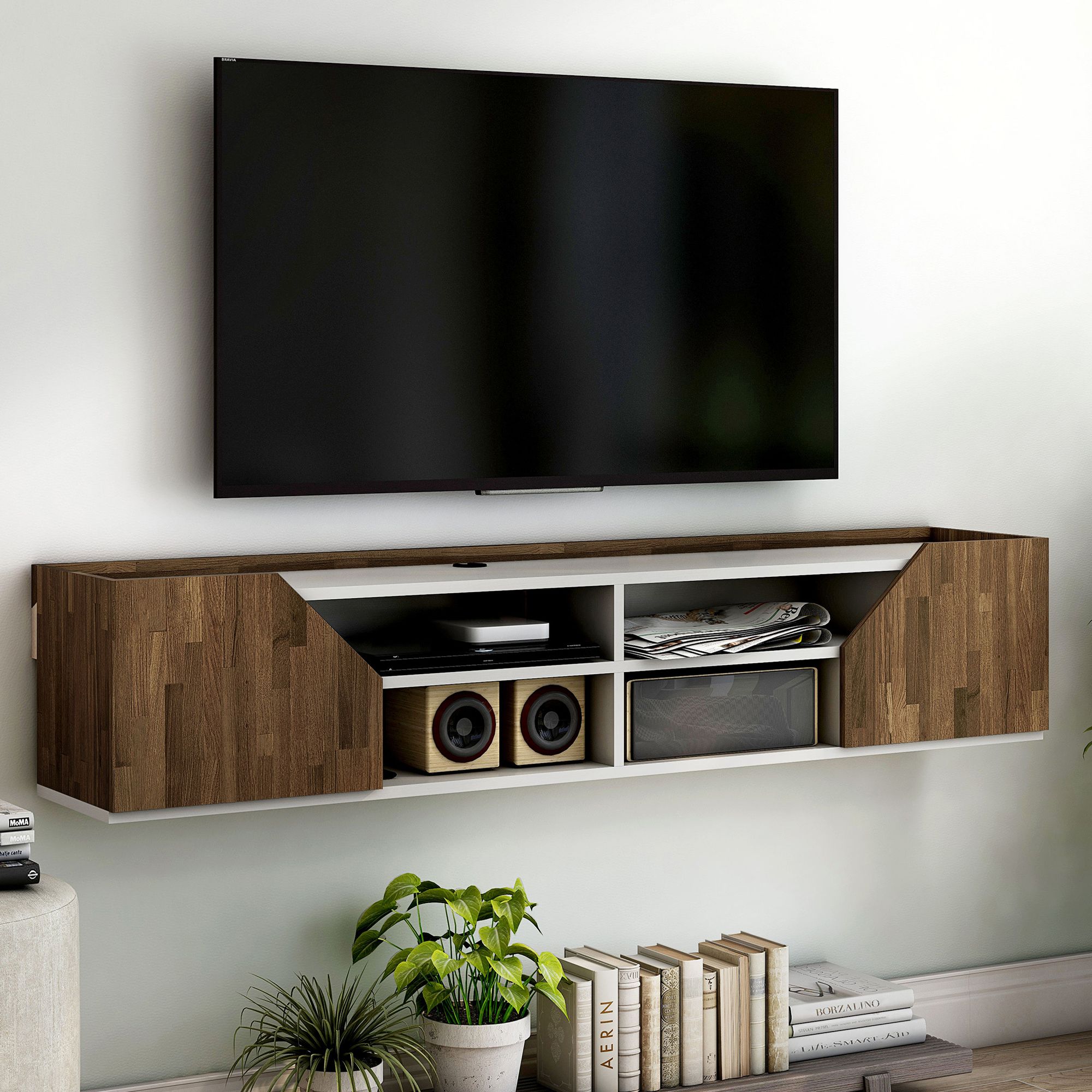 Besque 61 1/4" Wide White 2-Door Floating TV Stand