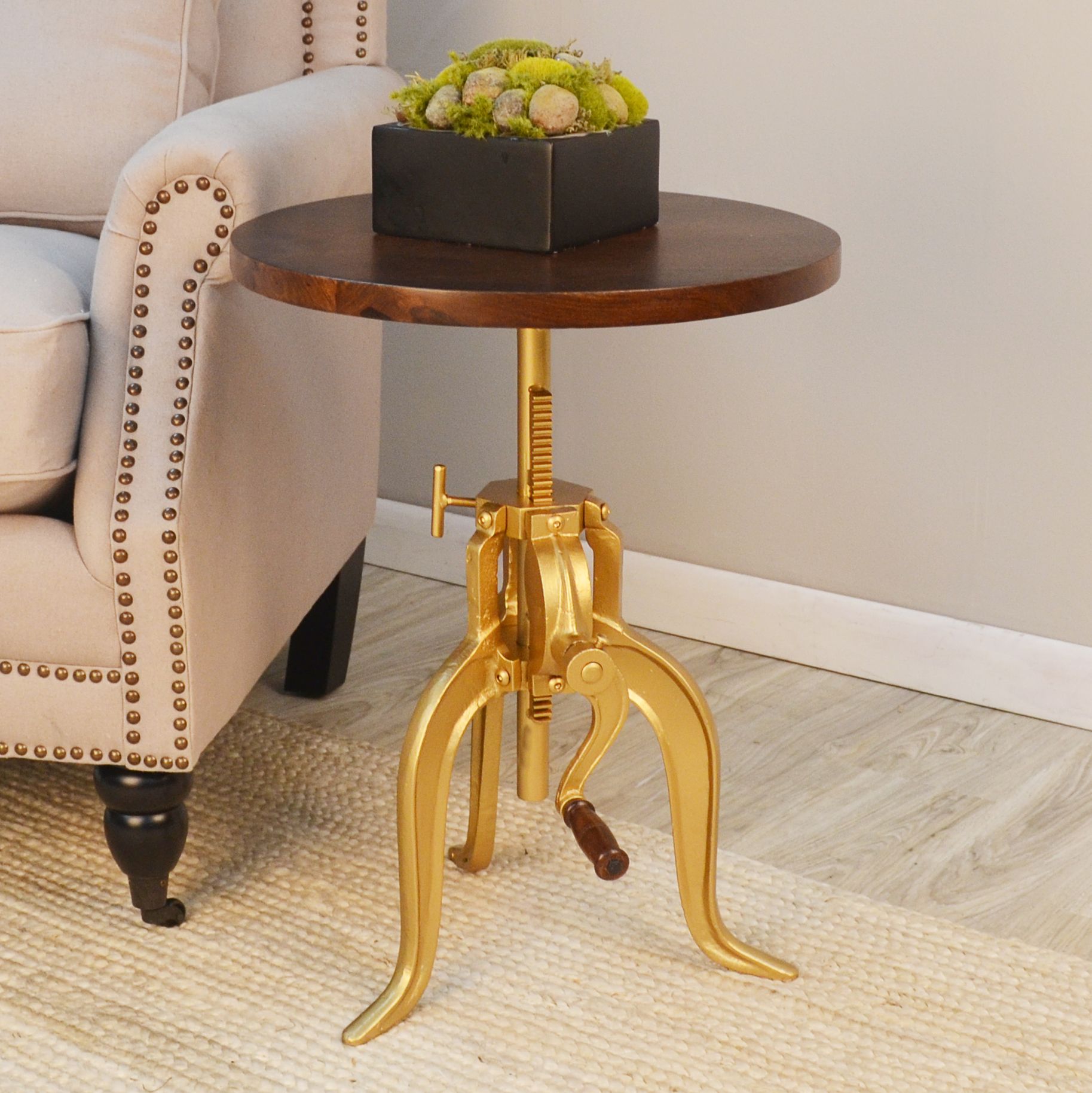Regan 18" Wide Elm Gold Adjustable Crank Accent Table