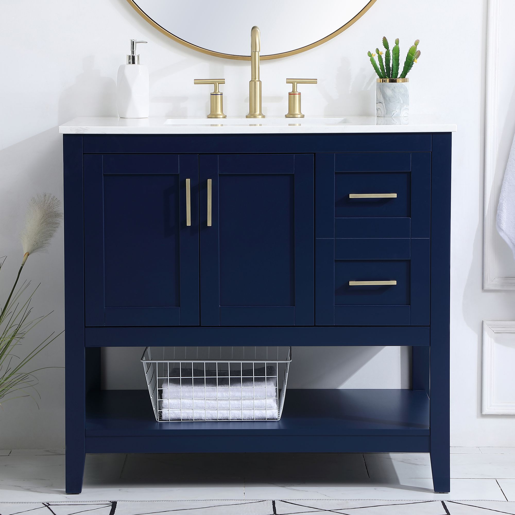 Aubrey 36" Wide Blue 3-Door Single Sink Bathroom Vanity