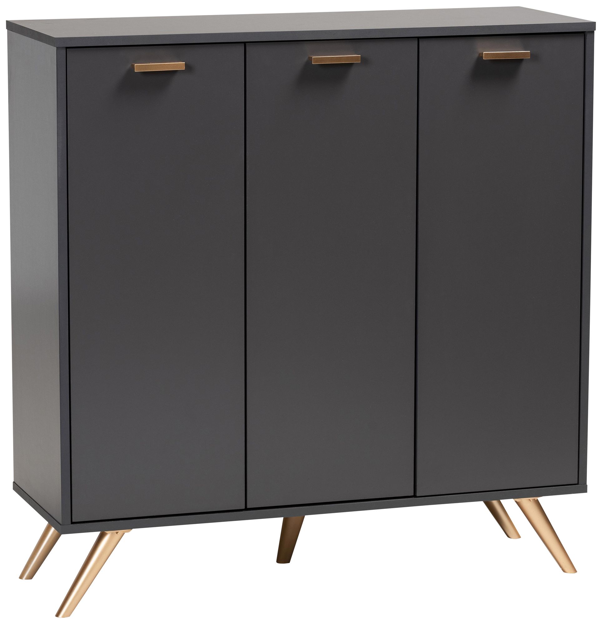 Baxton Studio Kelson 37" Wide Dark Gray 3-Door Shoe Cabinet