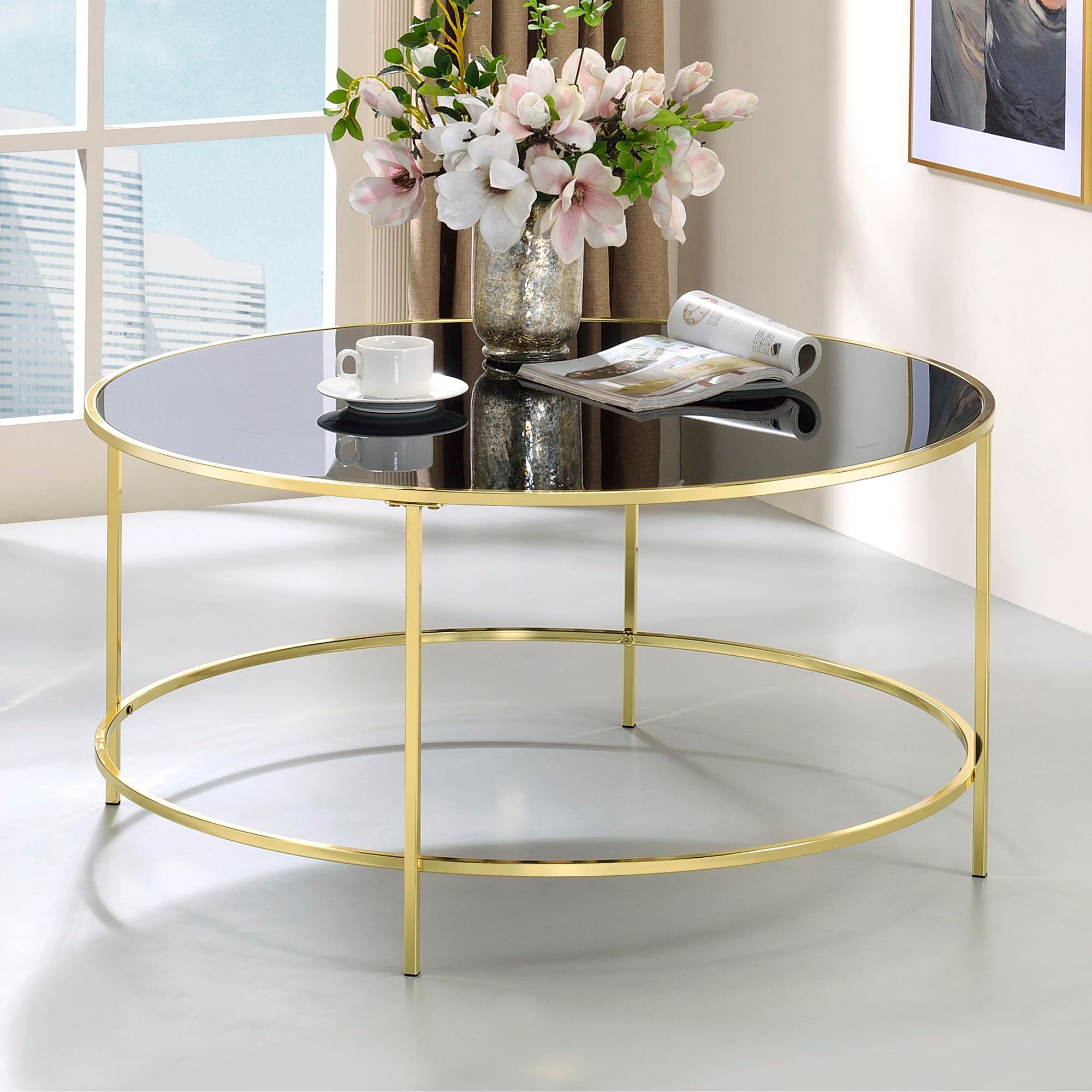 Fontayn 36" Wide Brass Metal Black Glass Round Coffee Table