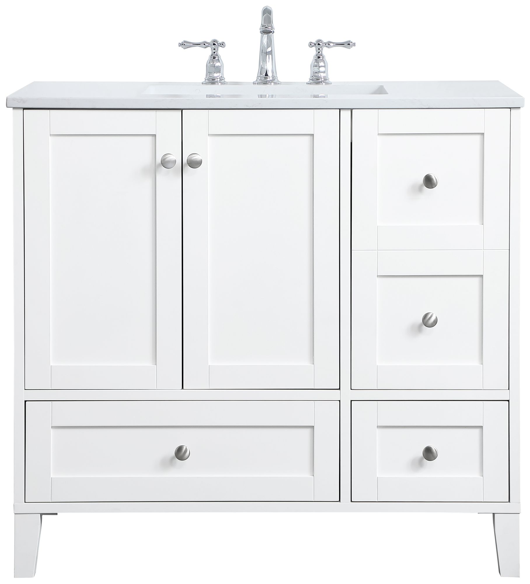 Elegant Lighting 36" Wide Single Sink White Marble Bathroom Vanity