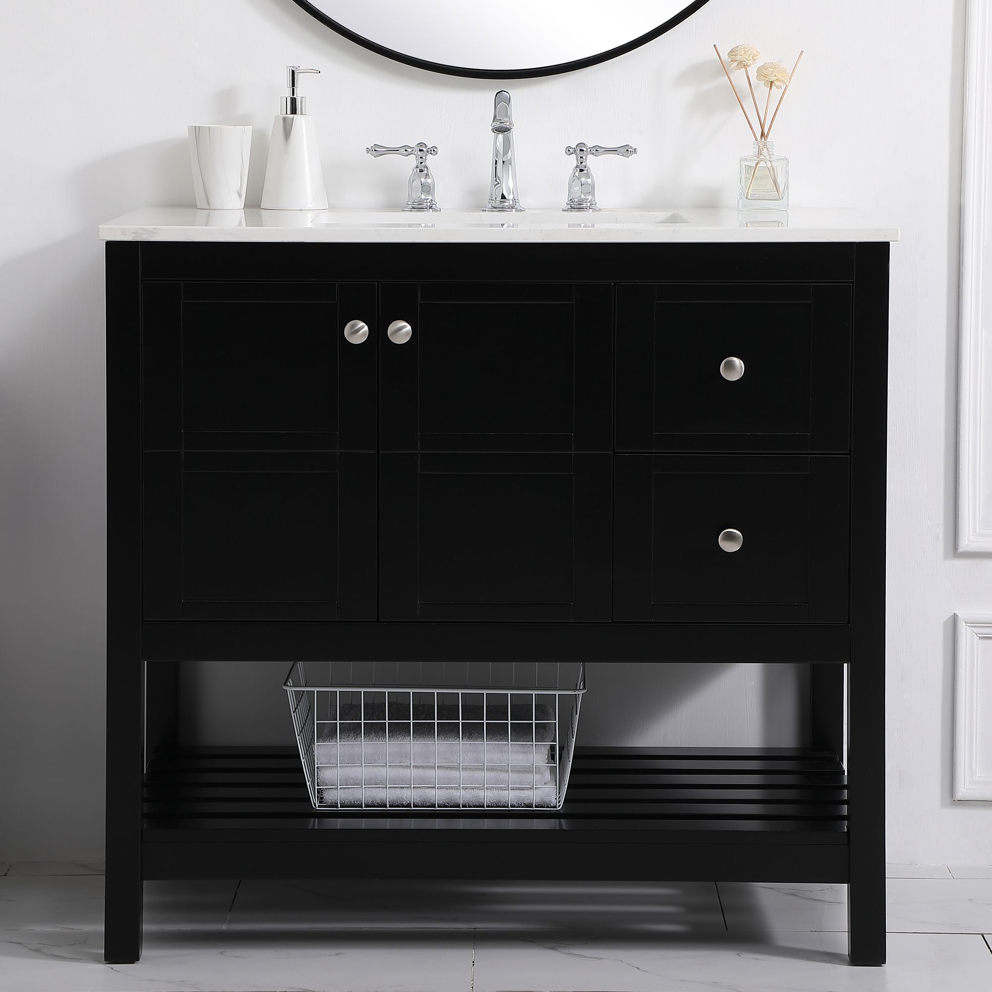 Irene 36" Wide Black 5-Drawer Single Sink Bathroom Vanity
