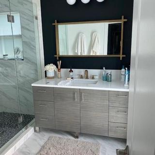 Looked at so many bathroom lights, and very happy I chose this one. Looks very modern, and the light is incredibly bright. I had an electrician install this light.