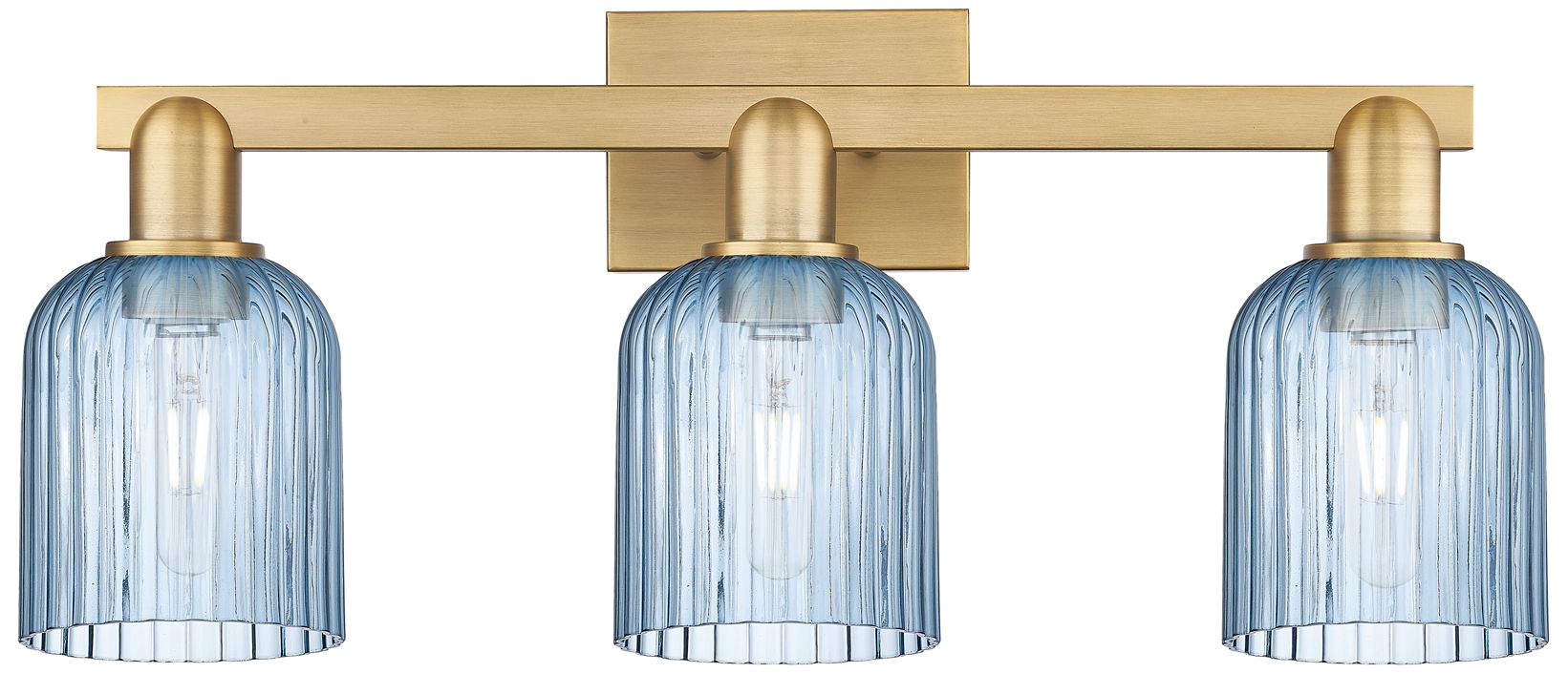 Bridal Veil 24" Wide Brass 3-Light Bath Light w/ Blue Glass