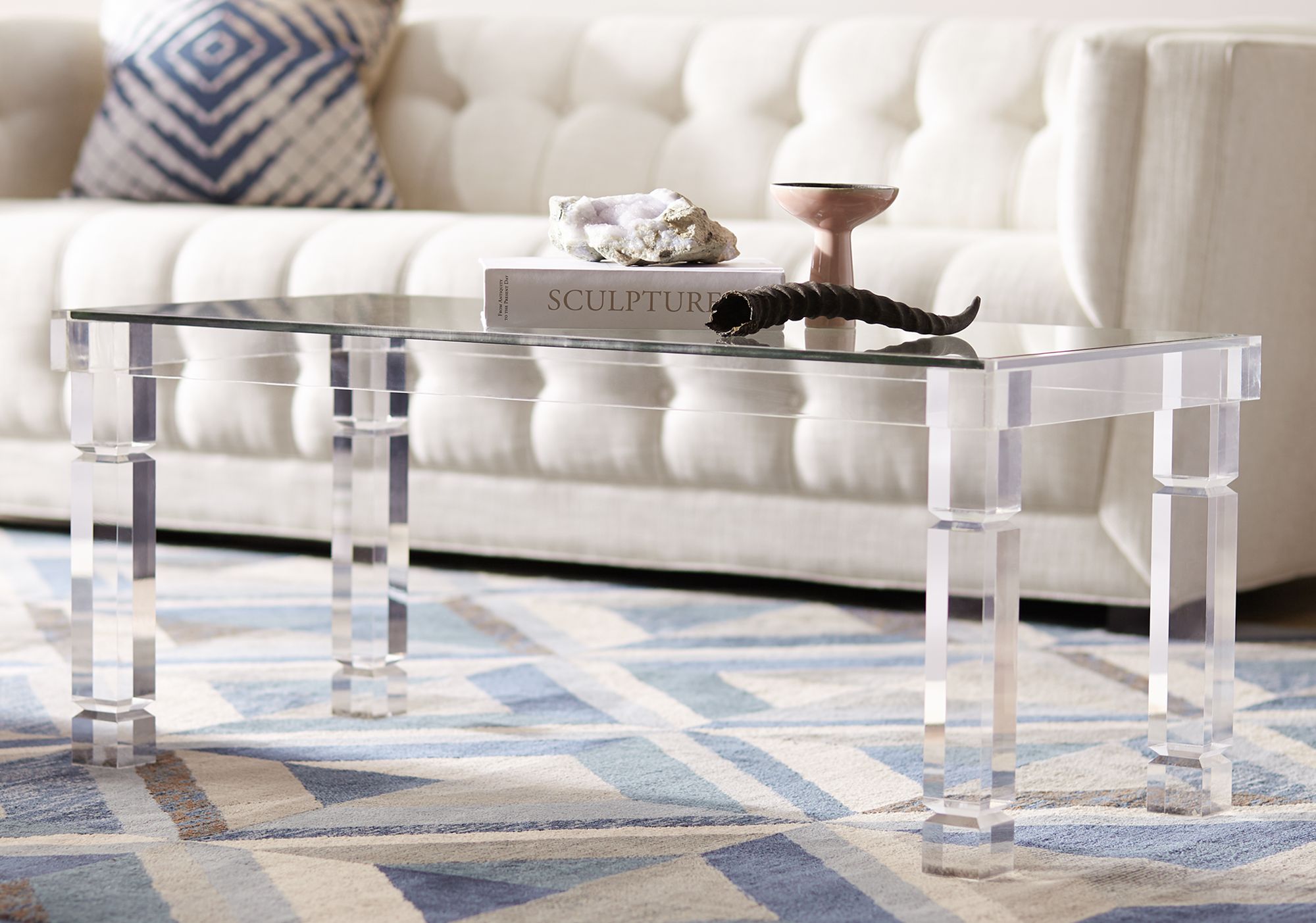 Bristol 42" Wide Acrylic and Glass Rectangular Modern Coffee Table