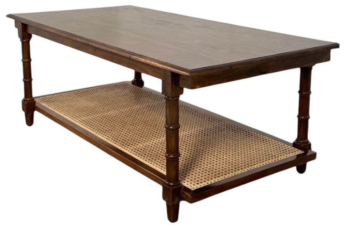 Chesterfield 42"W Chestnut Wood and Cane Coffee Table