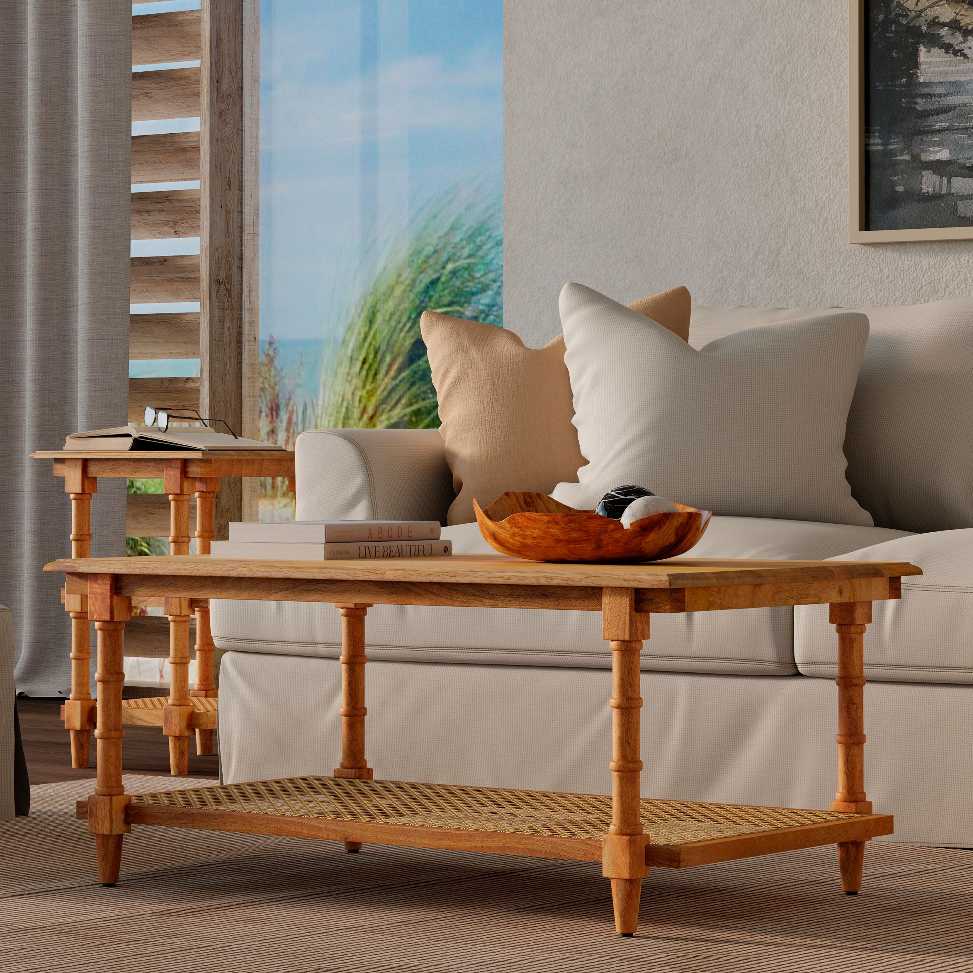 Chesterfield 42" Wide Natural Wood and Cane Coffee Table