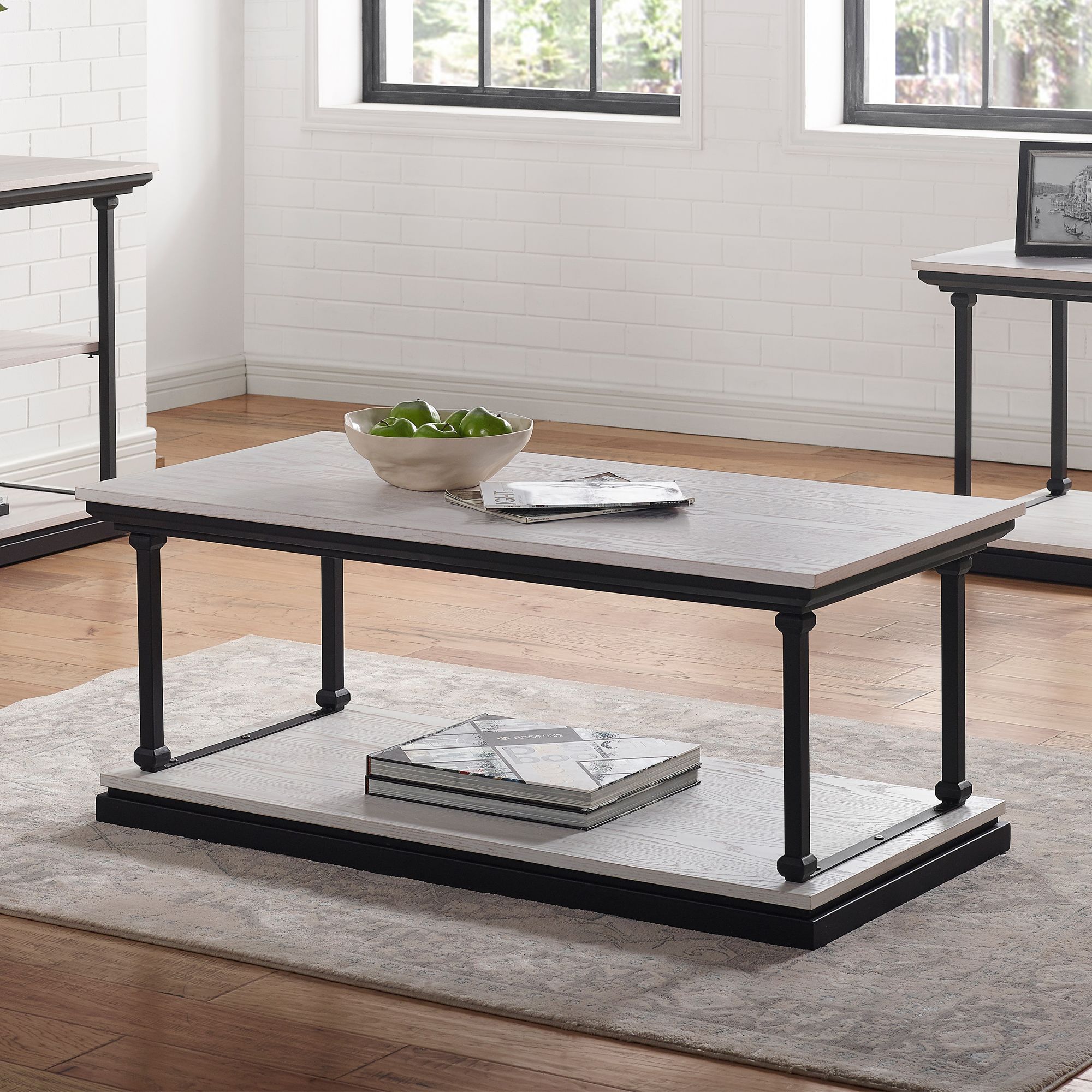 Regorra 47 1/4"W Antique White Black 1-Shelf Coffee Table