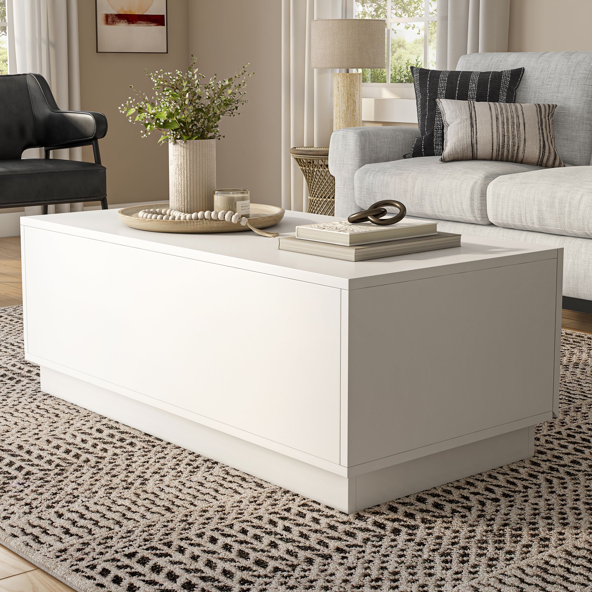 Vasket 47 1/4"W White Black 2-Concealed Drawer Coffee Table