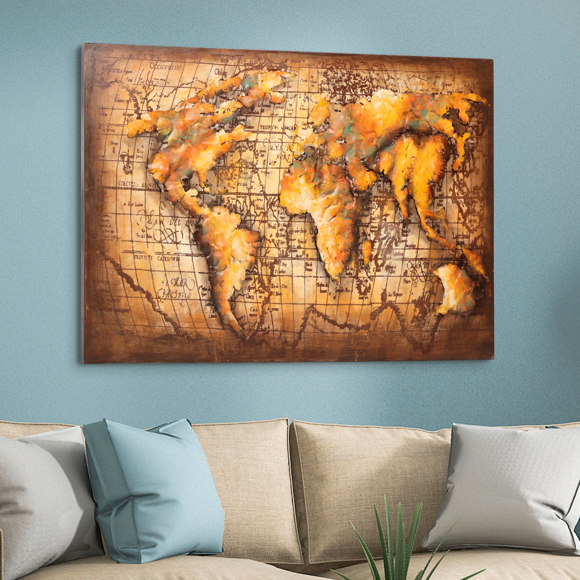 Globe Map 48" Wide Mixed Media Metal Dimensional Earth Wall Art