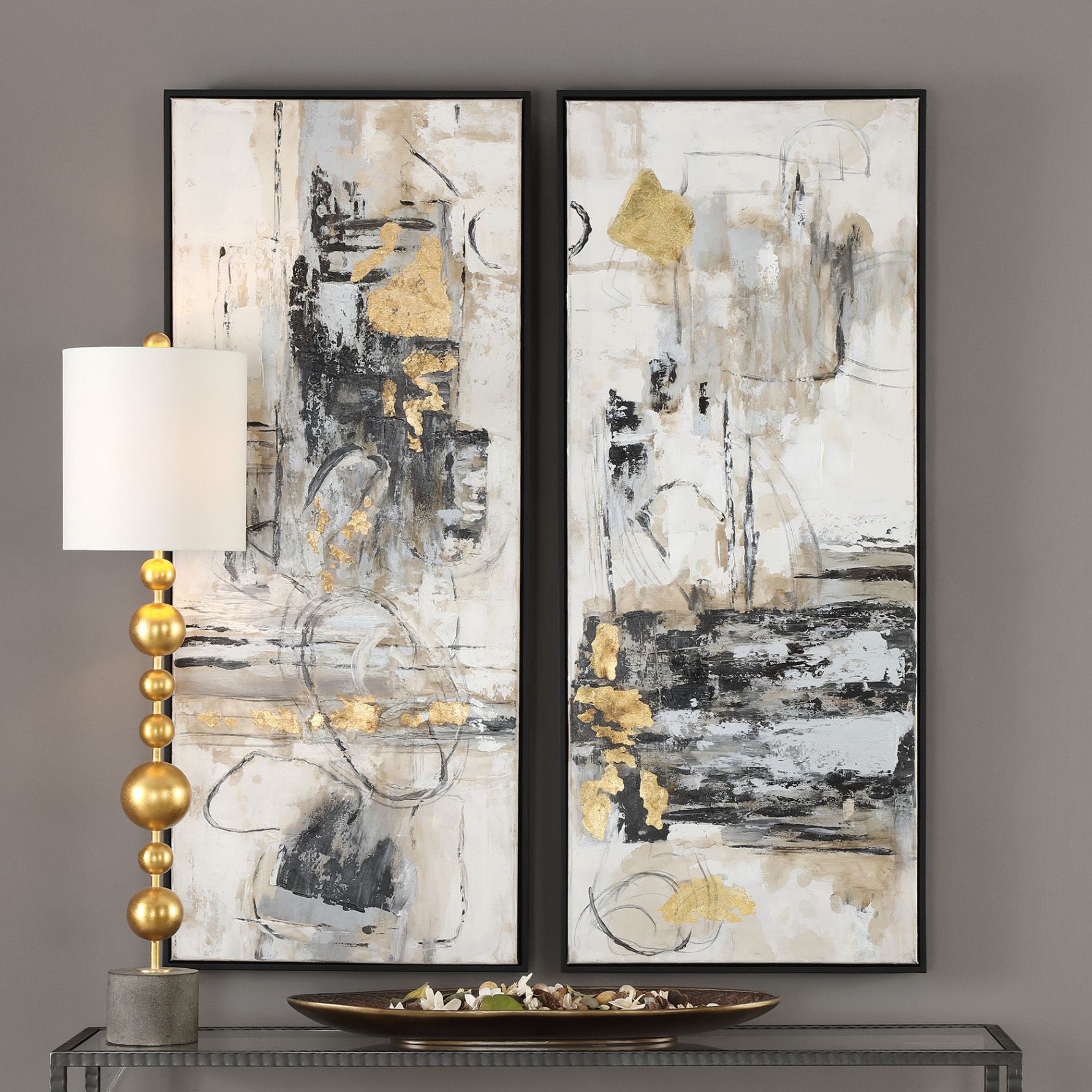 Reflection 57 1/2"H Black Gold 2-Piece Metal Wall Art Set