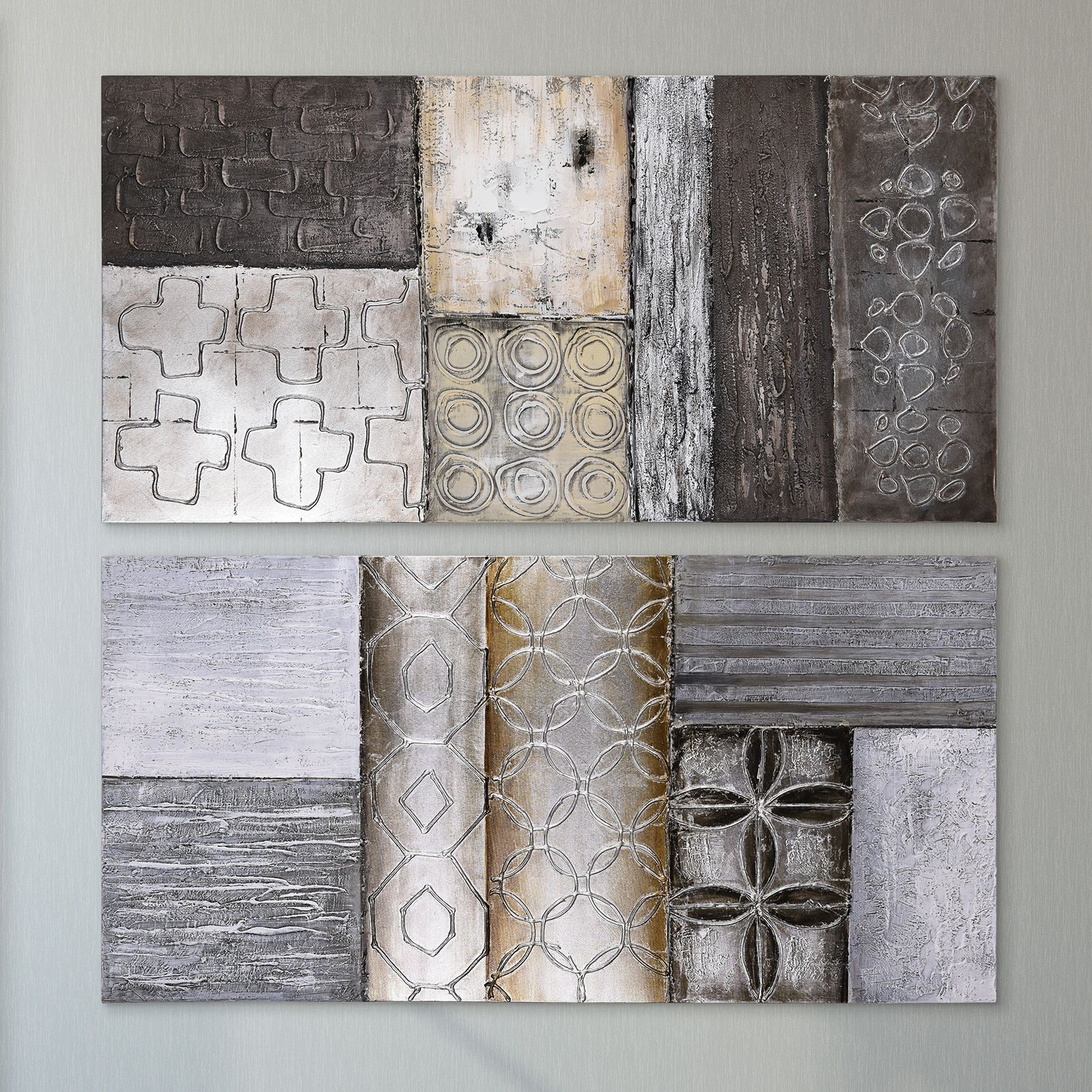 Textured 2 72"W Metallic Rugged Wooden Blocks Metal Wall Art