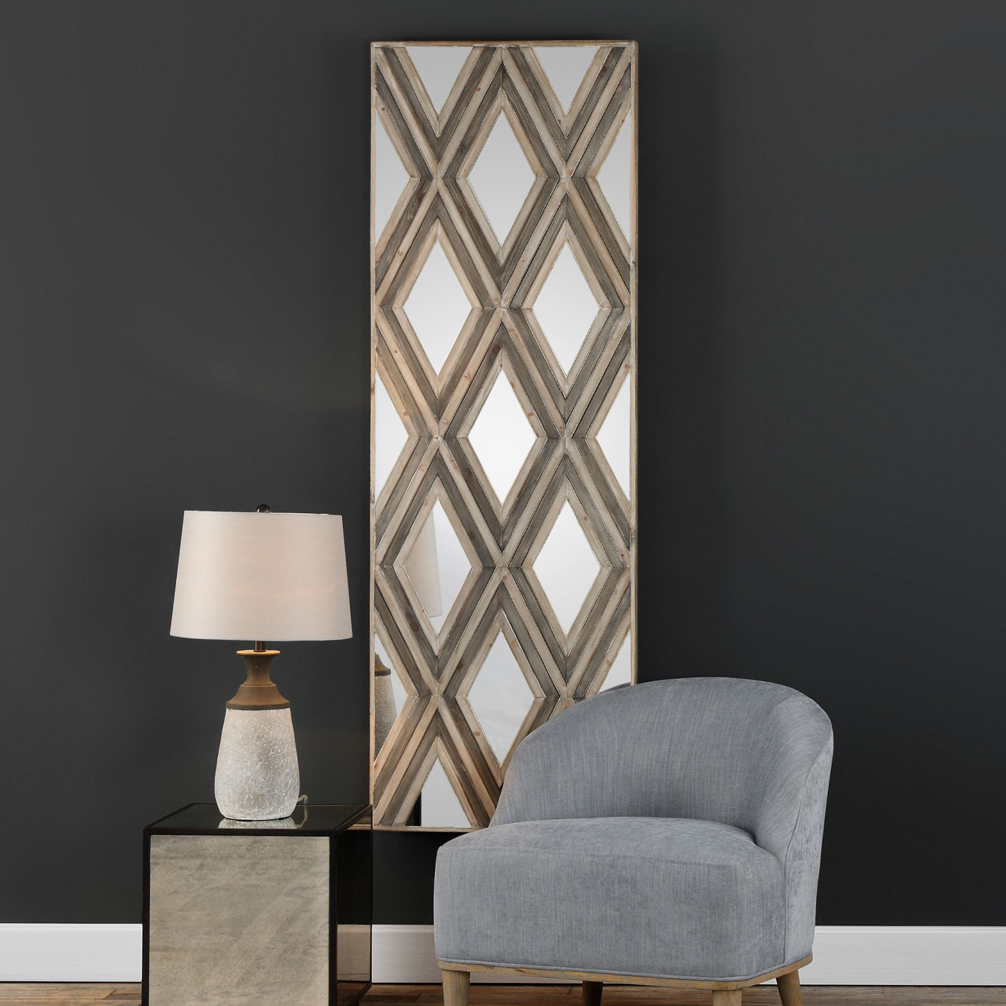 Tahir 72" High Geometric Argyle Pattern Mirrored Wall Art