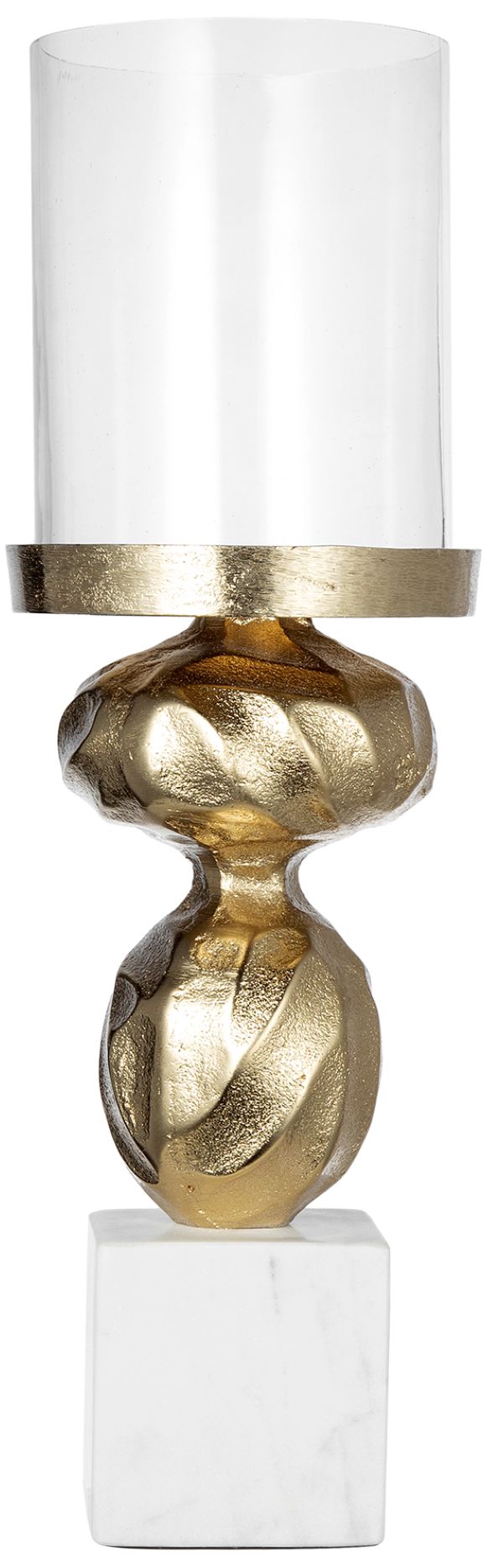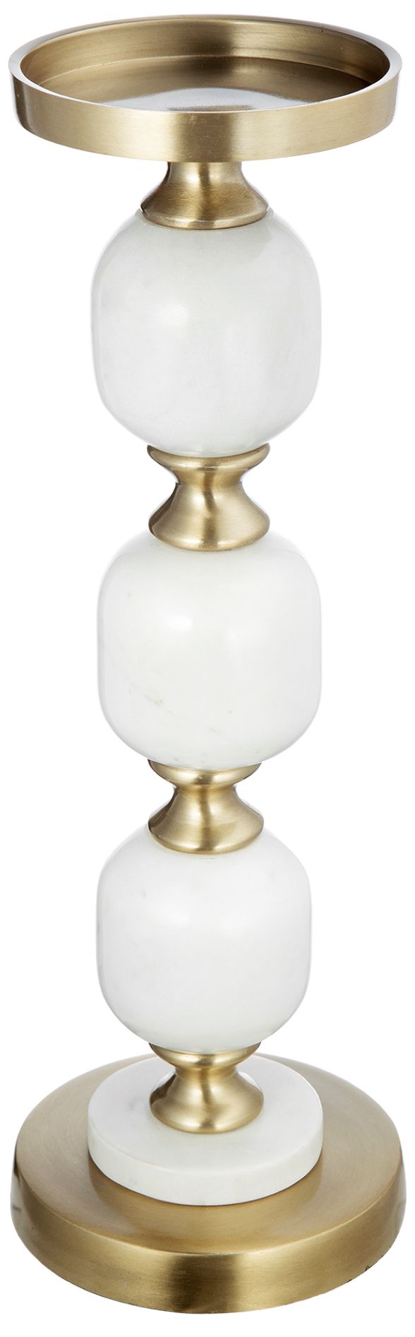 15" Gold & White Marble & Metal Pebble Pillar Holder