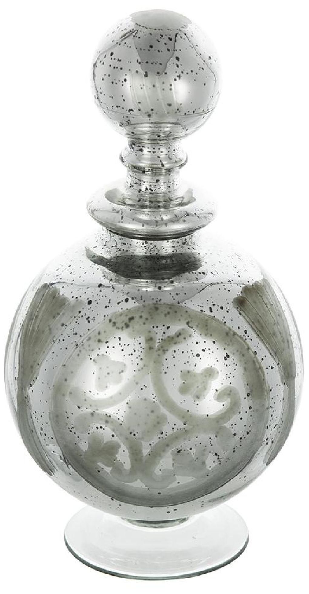 Antique Style 11" Silver Round Glass Jar with Lid and Etched Pattern