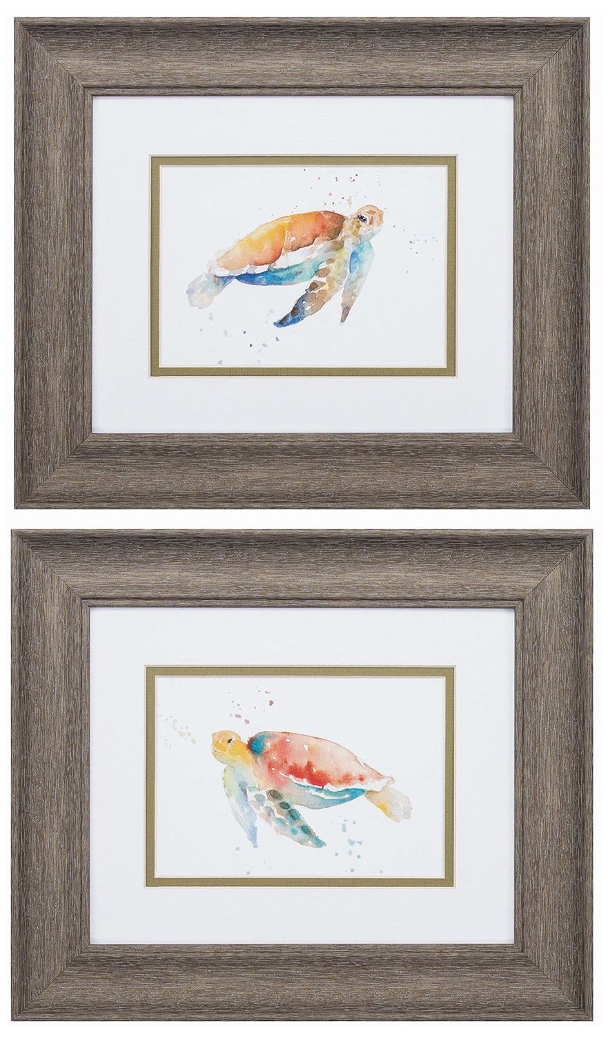 Sea Turtle 13"W x 11"H Framed Art Set of 2