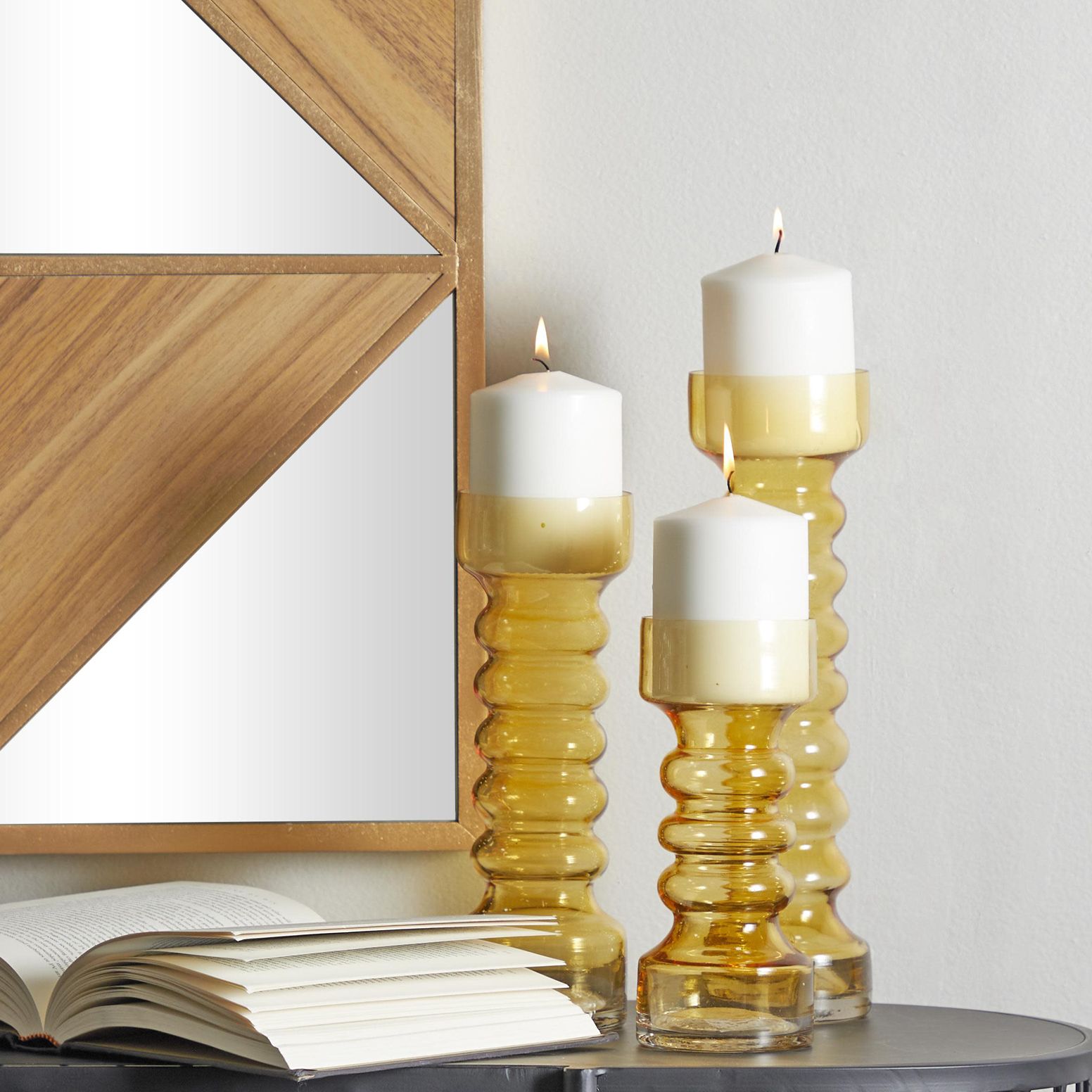 Yellow Wax Modern Flameless Candle, S/6 11"H