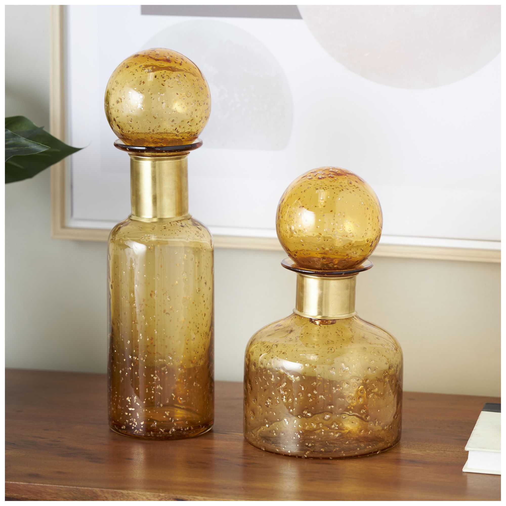Yellow Glass Traditional Decorative Jars, S/2 14", 10"H