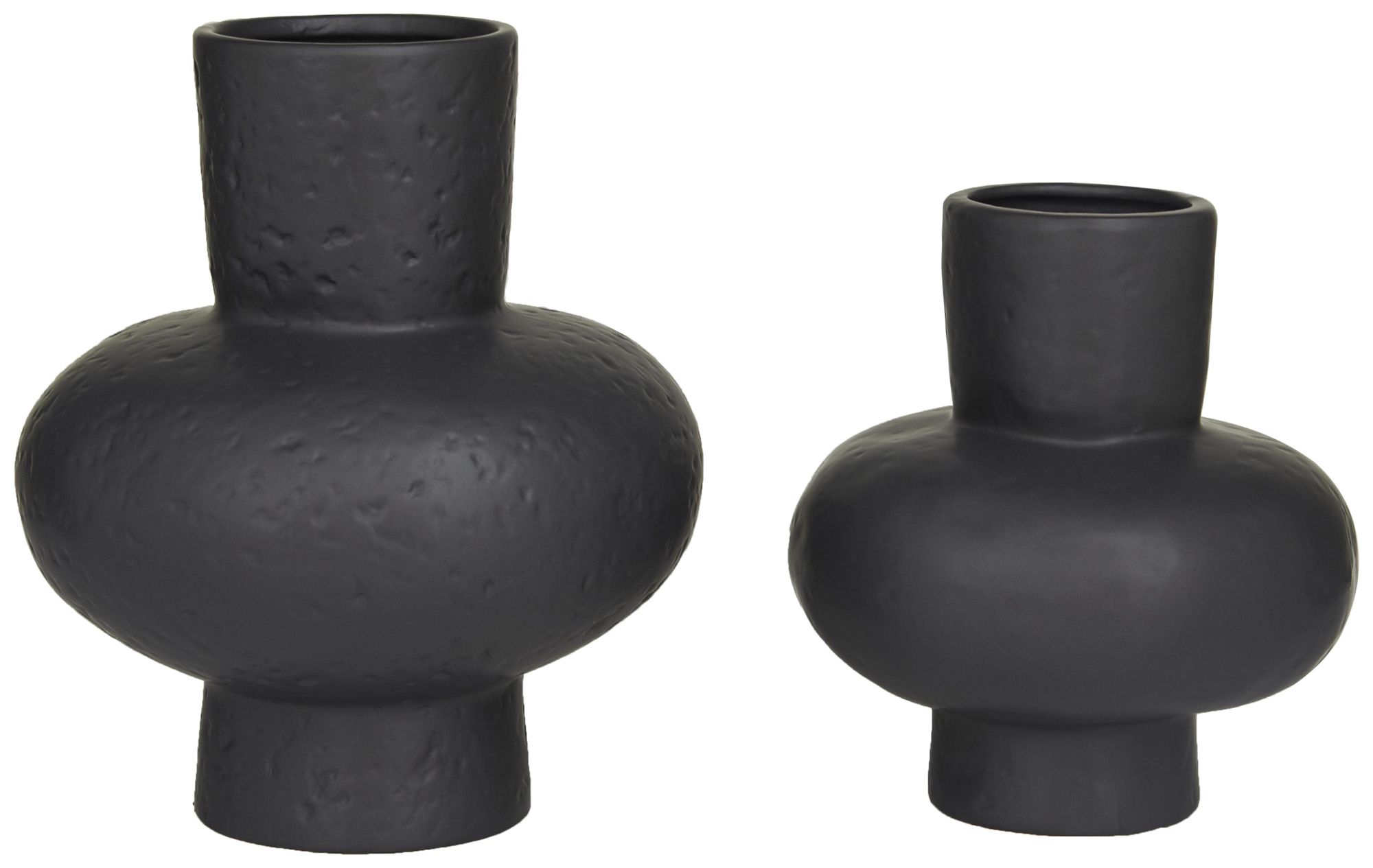 Black Ceramic Modern Vase, S/2 11", 9"H