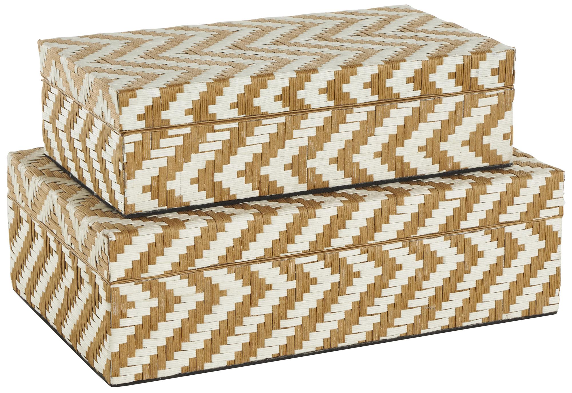 Brown Paper Handmade Zig Zag Storage Decorative Box, Set of 2 12", 8"W