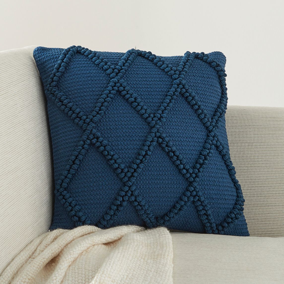 Life Styles Navy Diamond Lattice 18" Square Throw Pillow