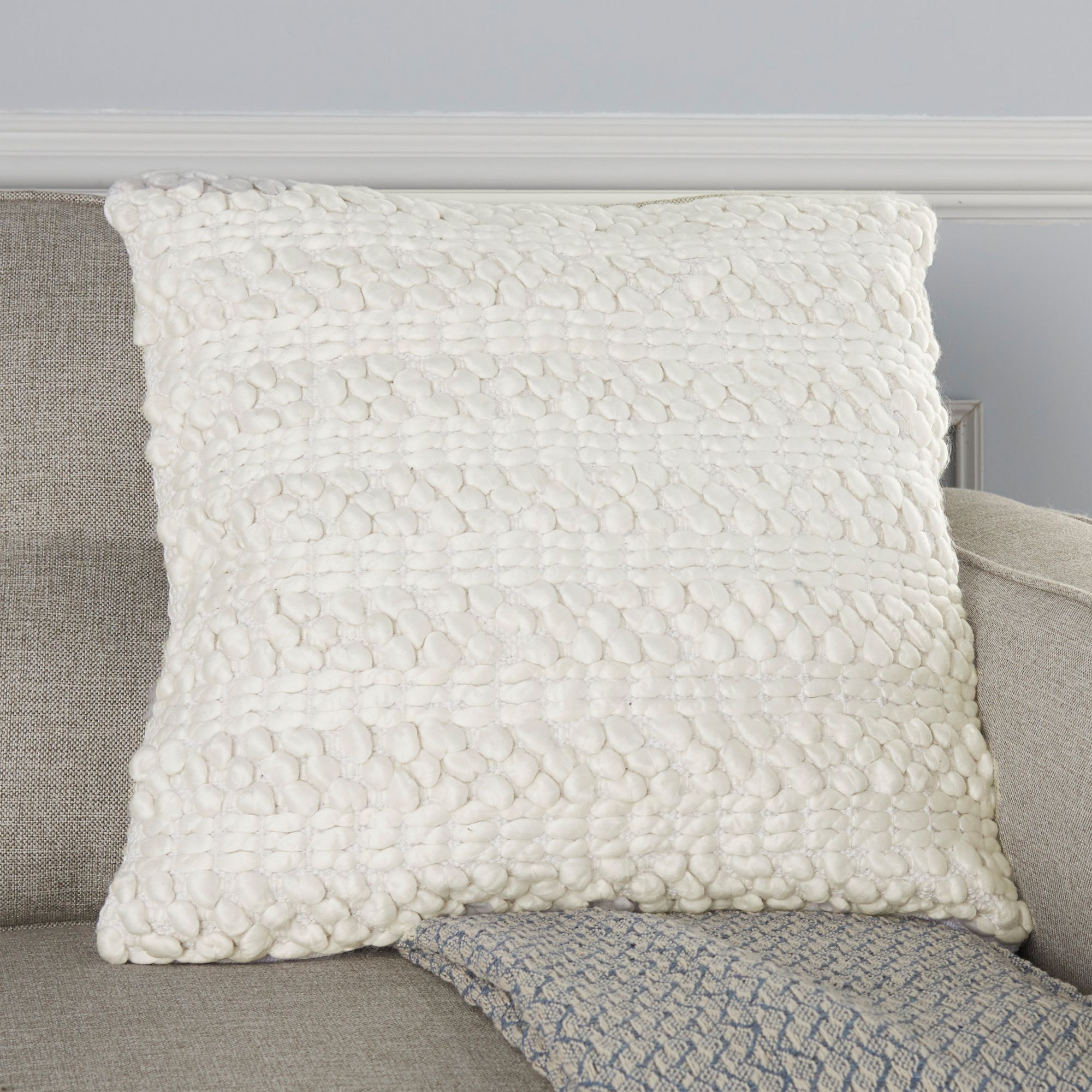 Life Styles White Woven Stripes 20" Square Throw Pillow
