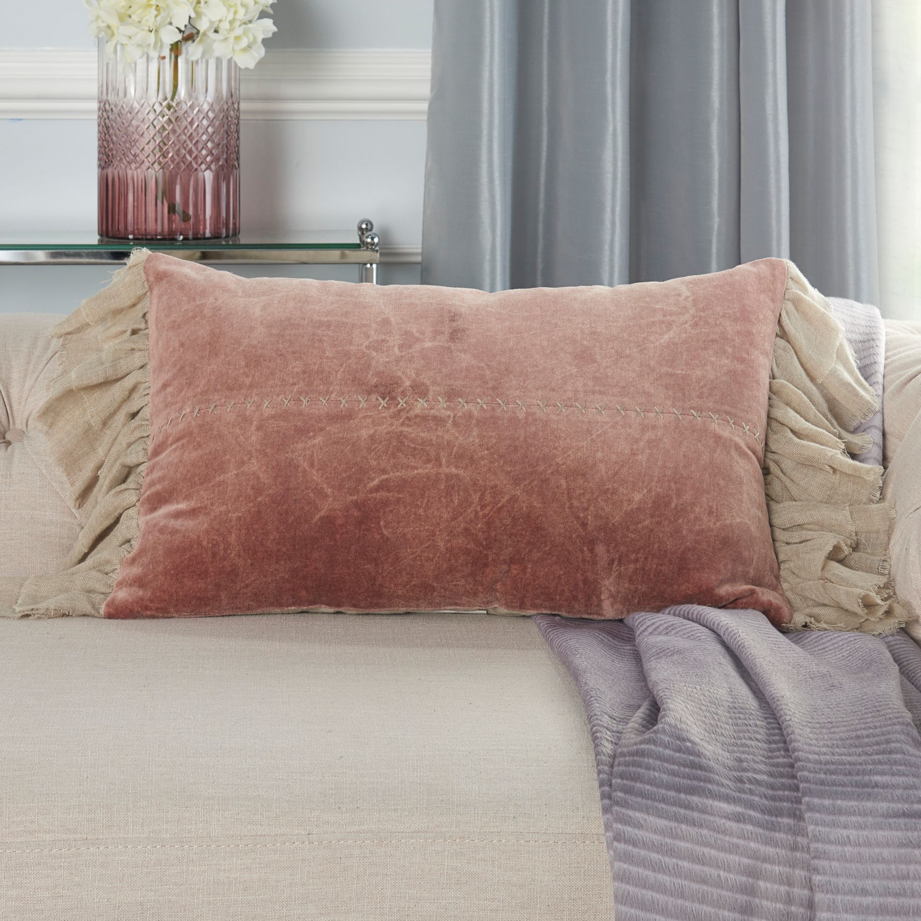 Sofia Blush Stitch Velvet Frills 22"x14" Throw Pillow