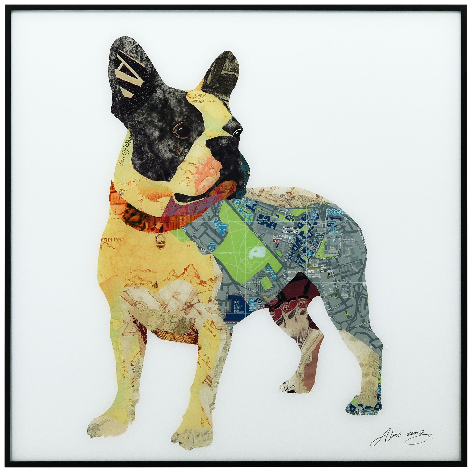 English Bulldog Pup 17" High Collage Framed Wall Art