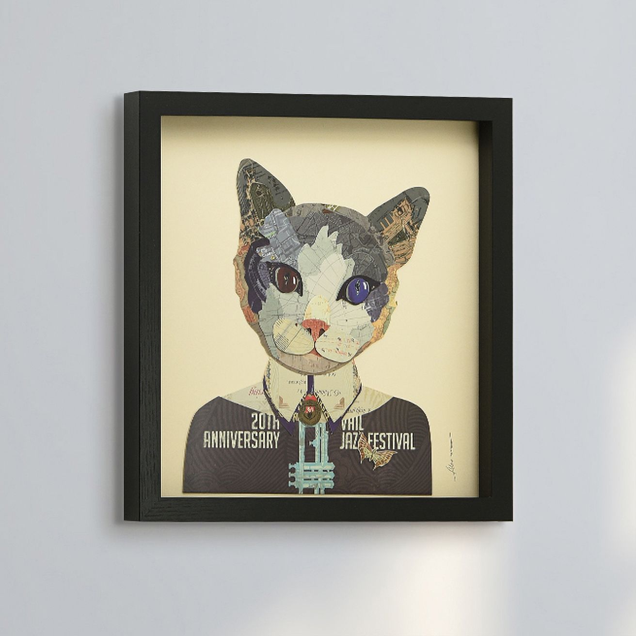 Funky Cat 1 17" High Dimensional Collage Framed Wall Art