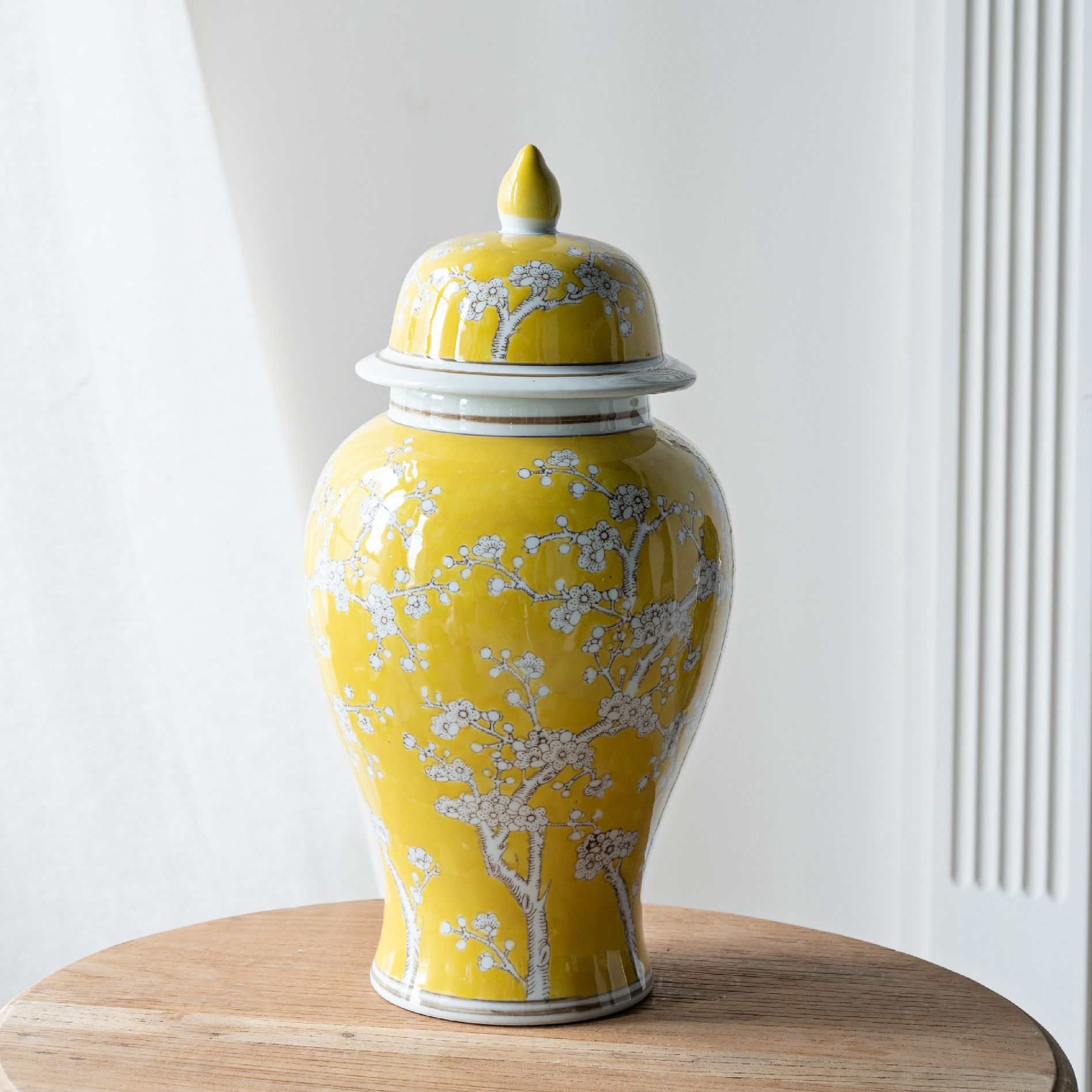 Beauchamp 19 1/2"H Yellow and White Plum Blossom Ginger Jar