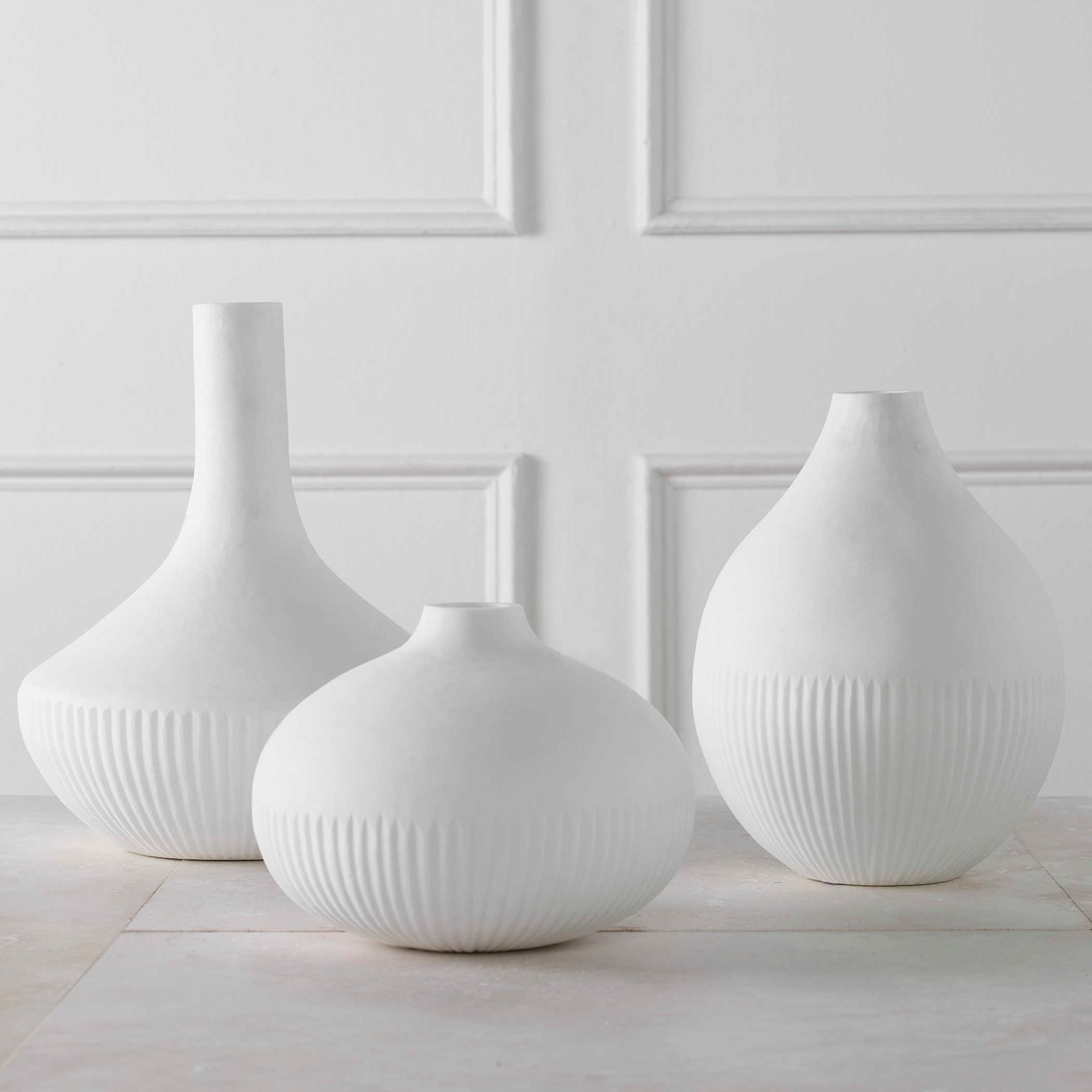 Uttermost Apothecary 12" High Satin White Vases Set of 3