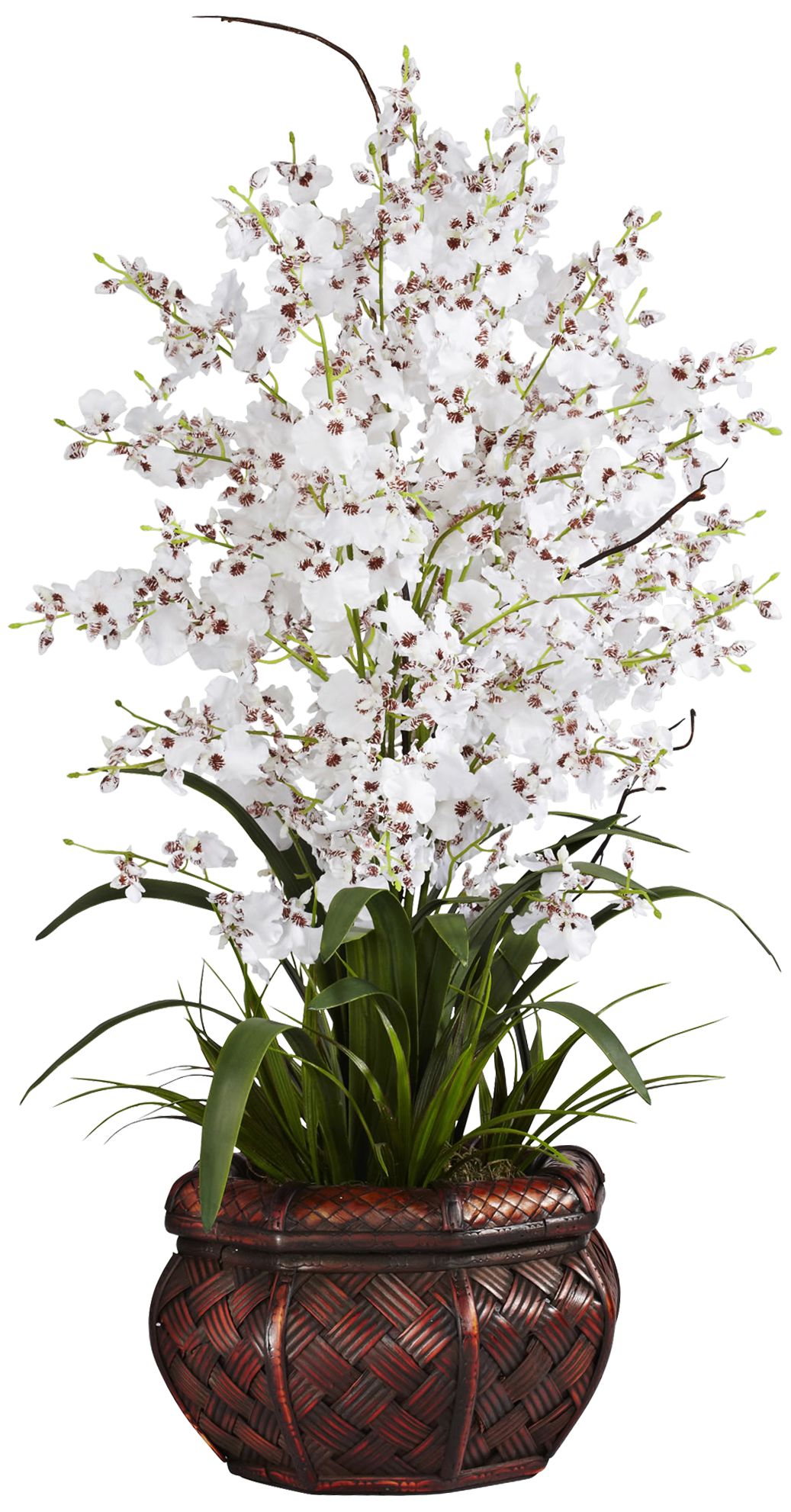White Dancing Lady 30" High Faux Flowers in Burgundy Pot
