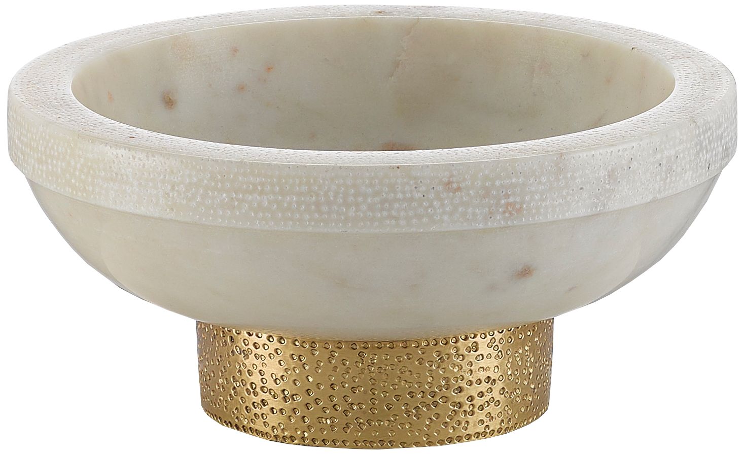 Currey & Company Valor White and Brass 3 3/4"H Marble Bowl